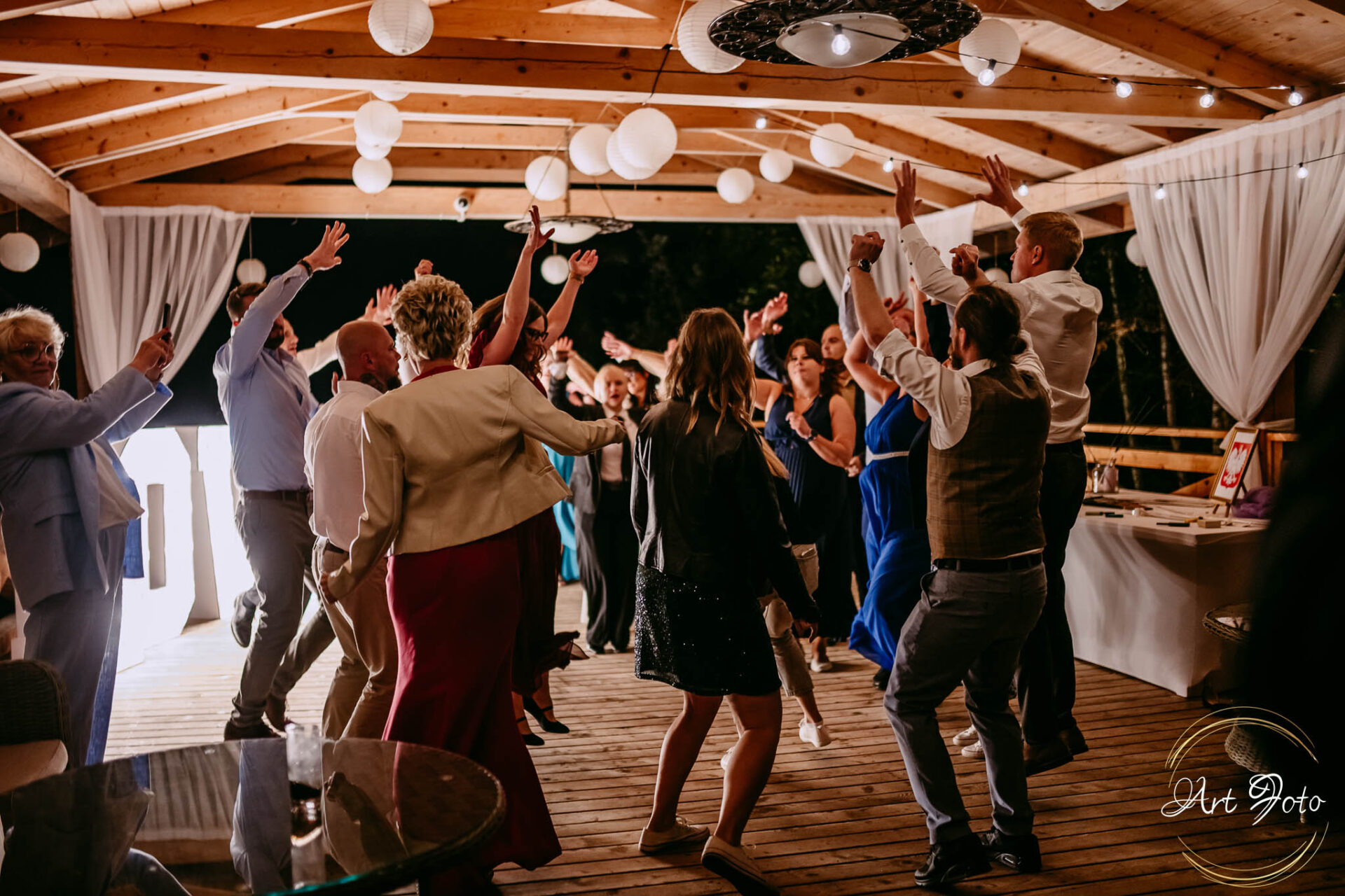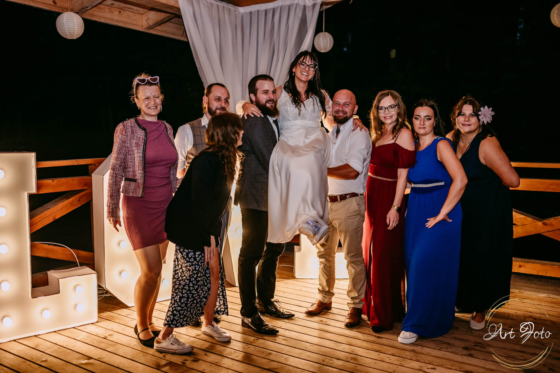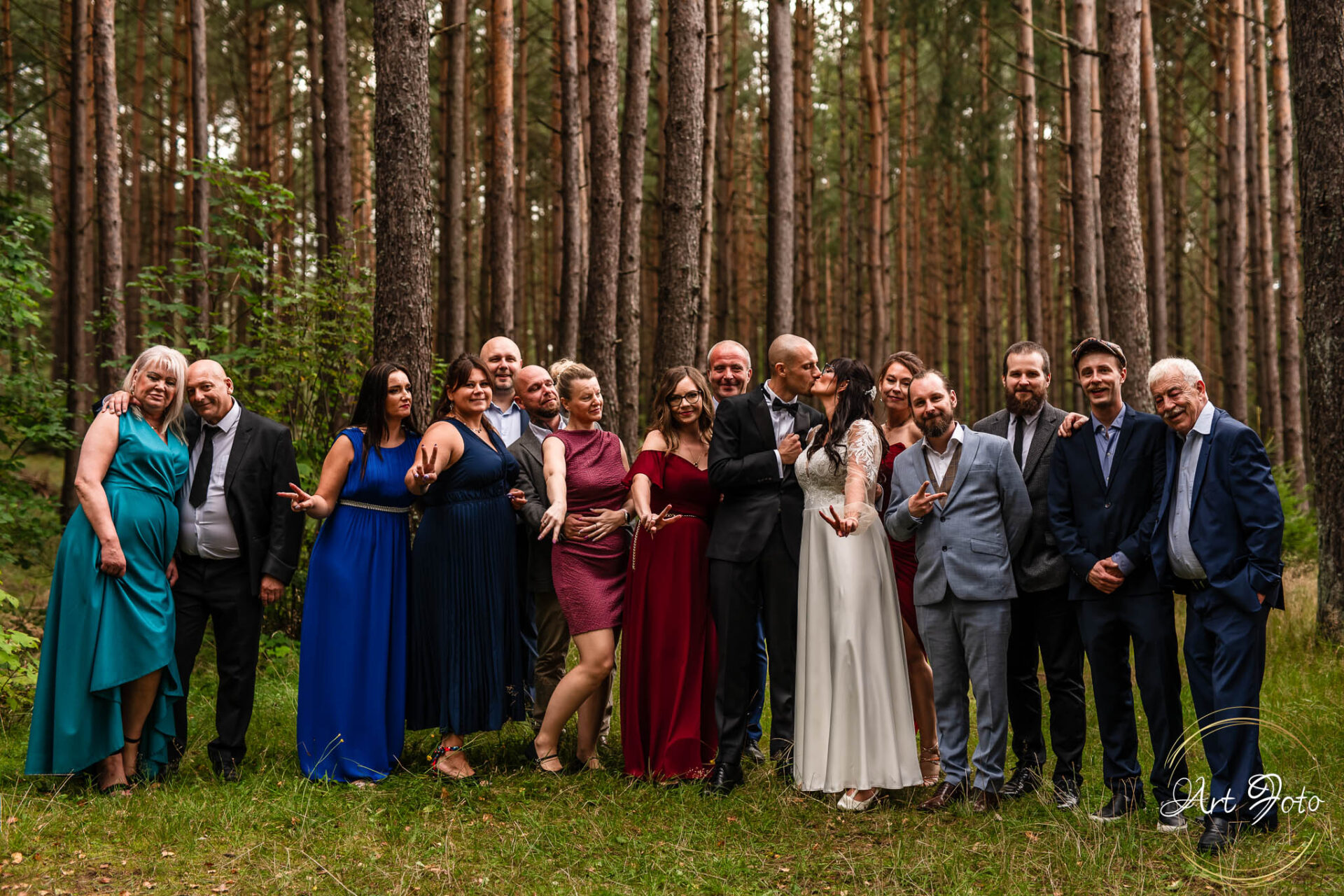 Ceremonia na drewnianym pomoście, otoczonym zielenią lasu, to coś absolutnie wyjątkowego. Para Młoda stoi nad wodą, a wokół nich najbliżsi – w ciszy, która potrafi być głośniejsza niż najpiękniejsza muzyka.