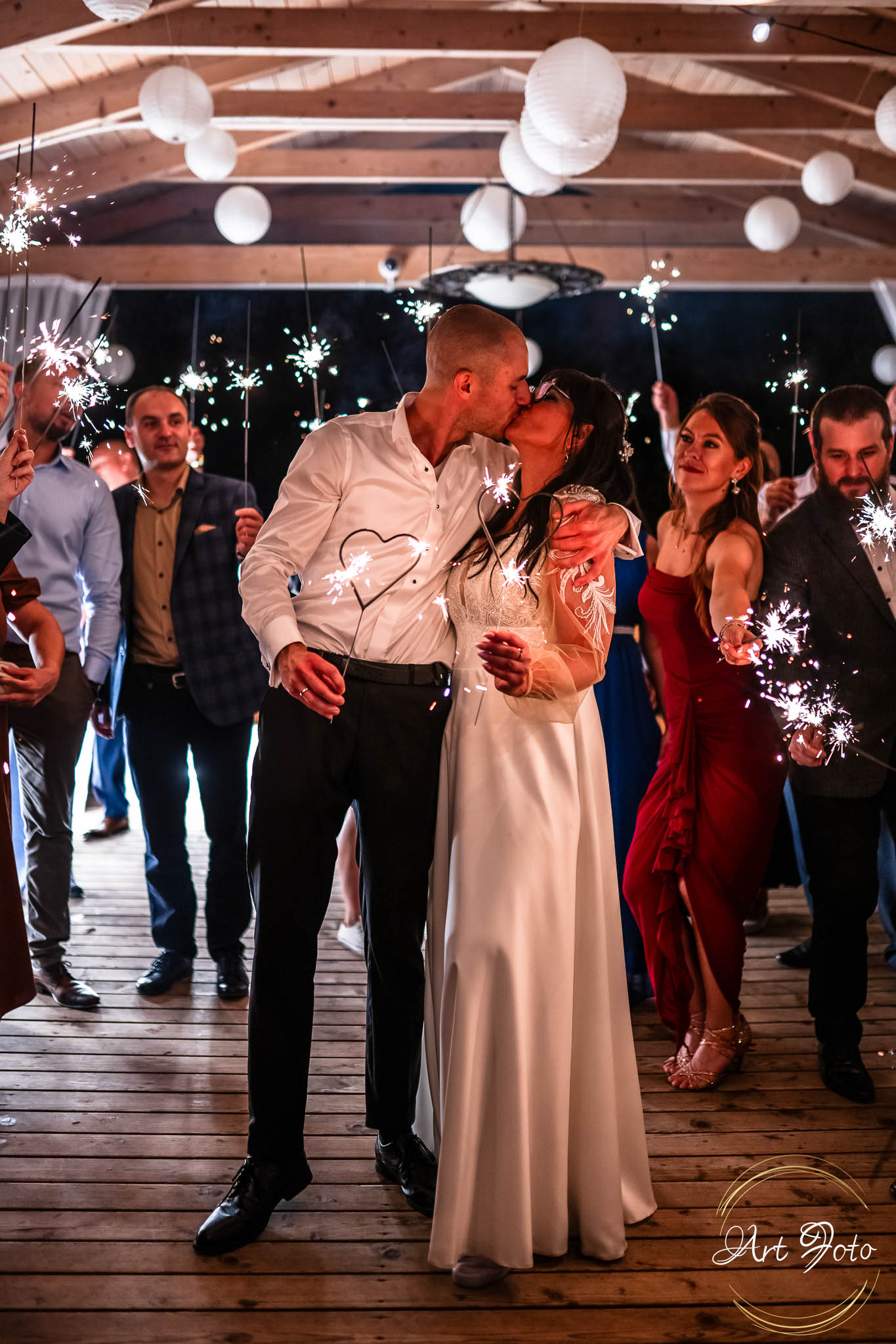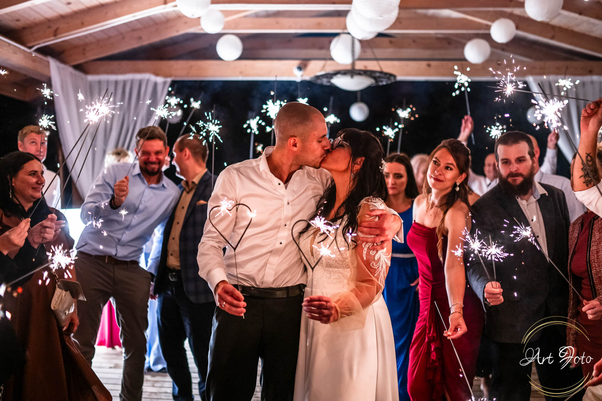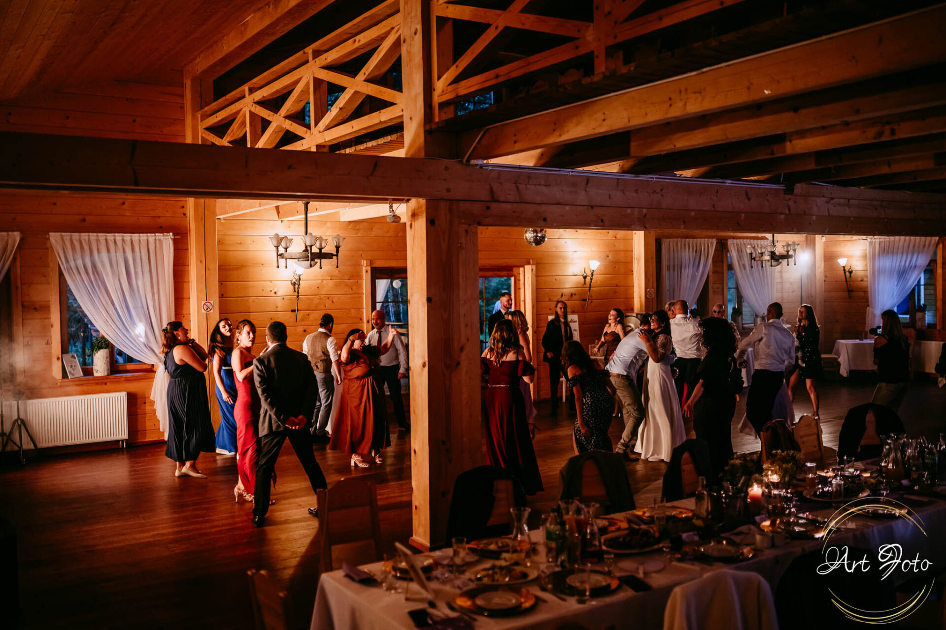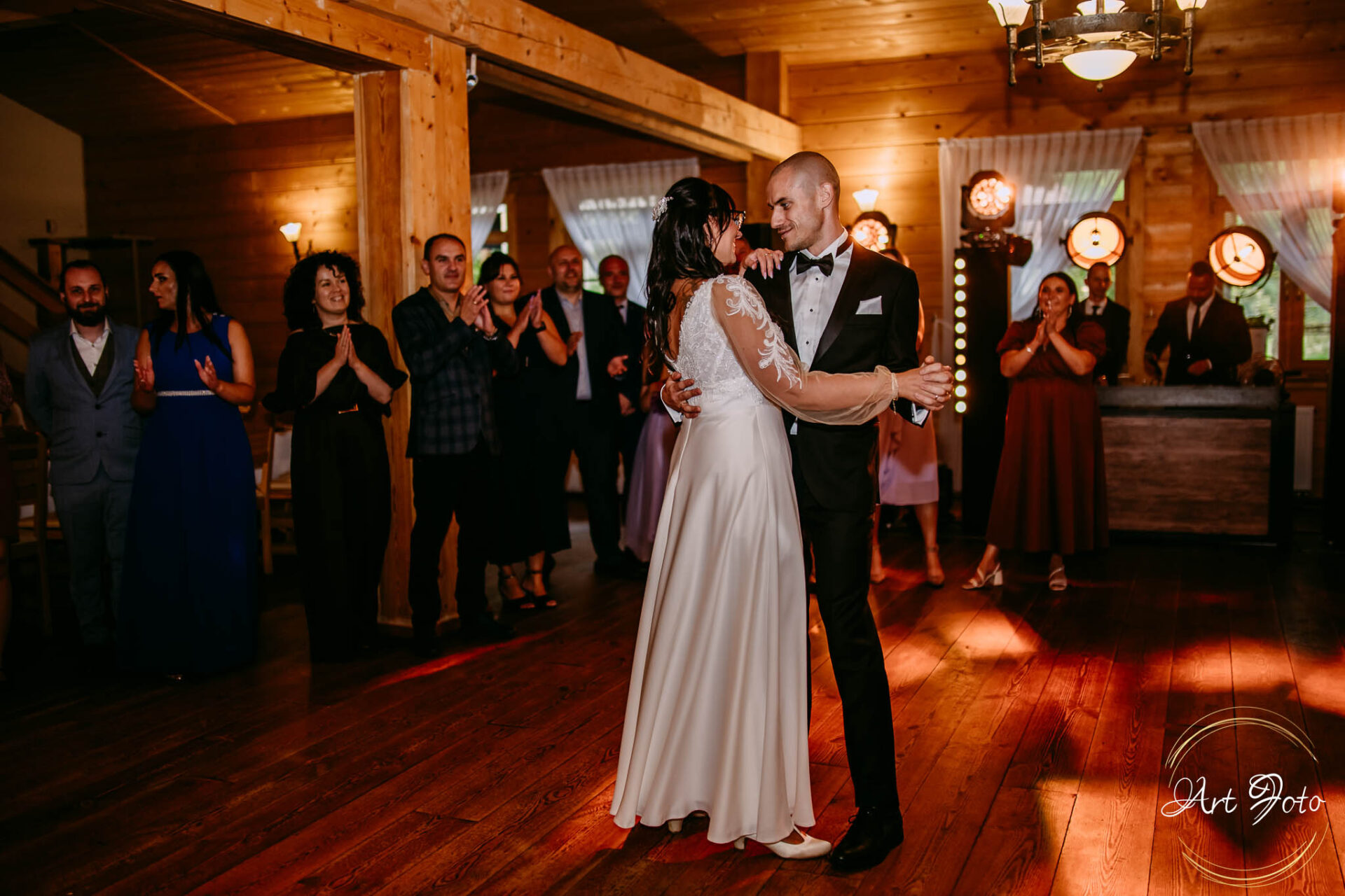 Ceremonia na drewnianym pomoście, otoczonym zielenią lasu, to coś absolutnie wyjątkowego. Para Młoda stoi nad wodą, a wokół nich najbliżsi – w ciszy, która potrafi być głośniejsza niż najpiękniejsza muzyka.