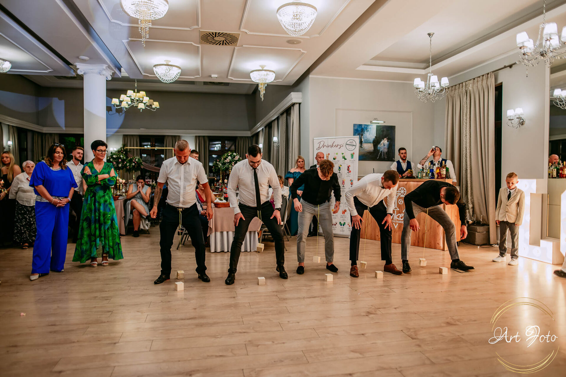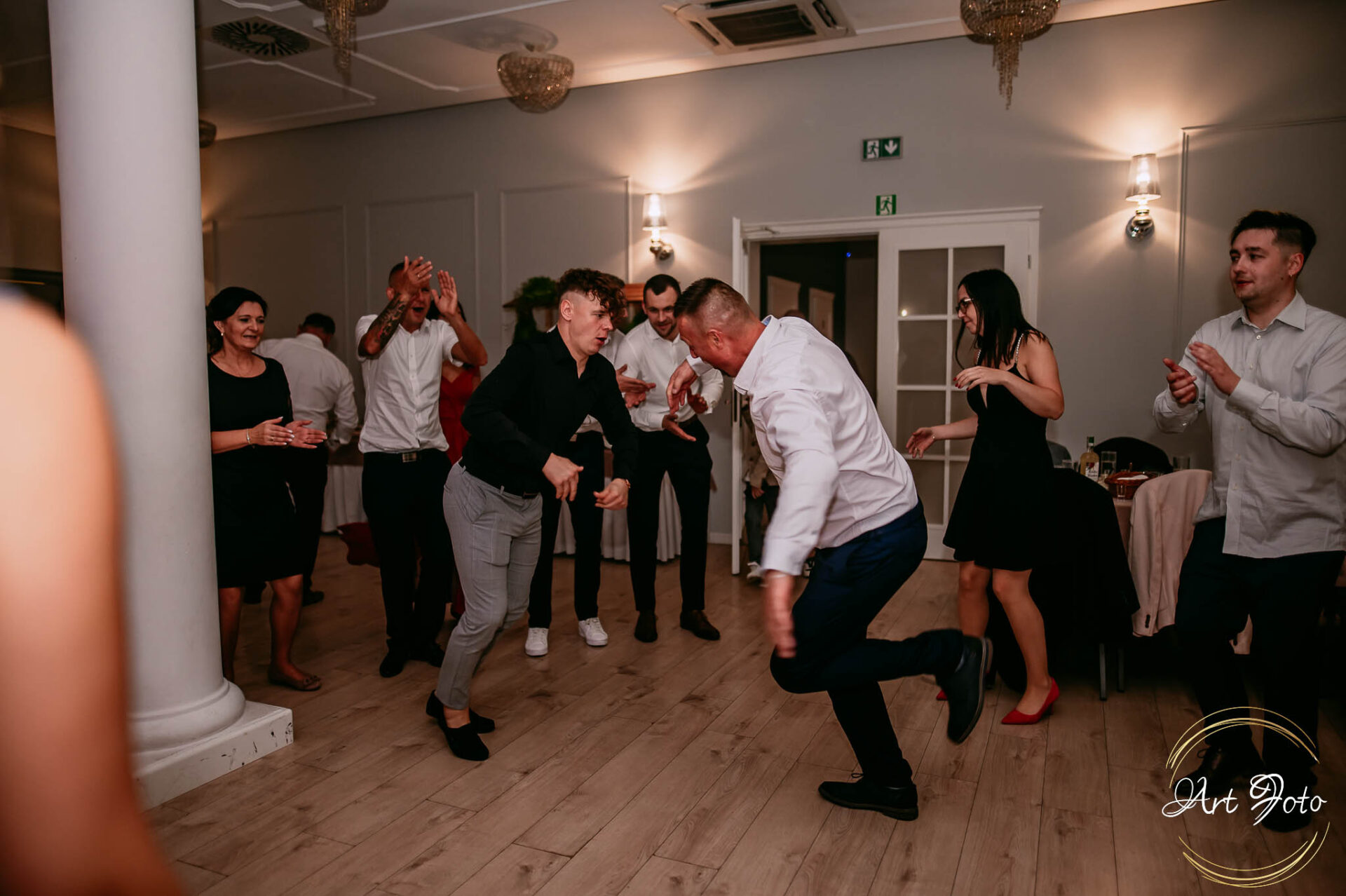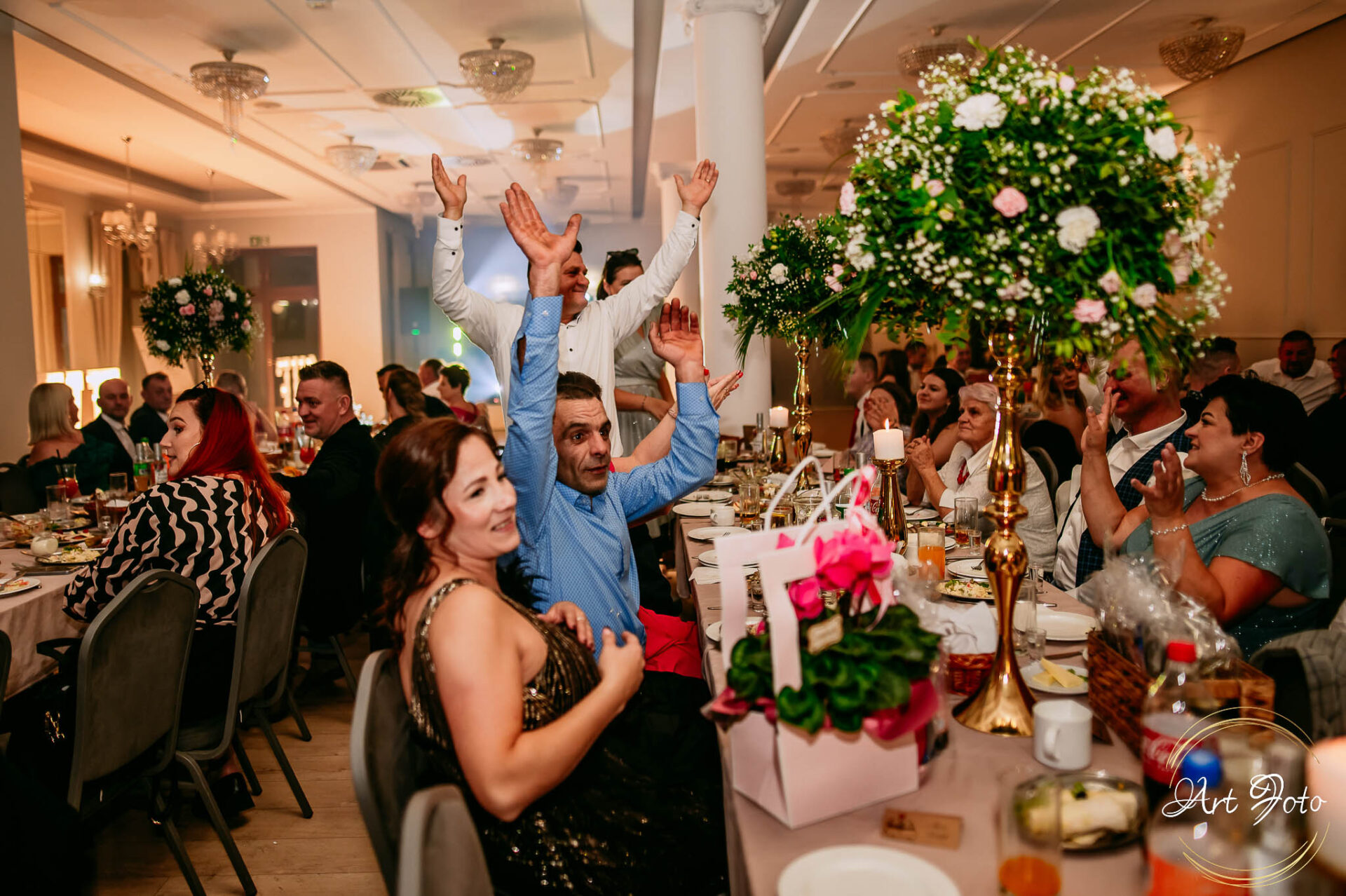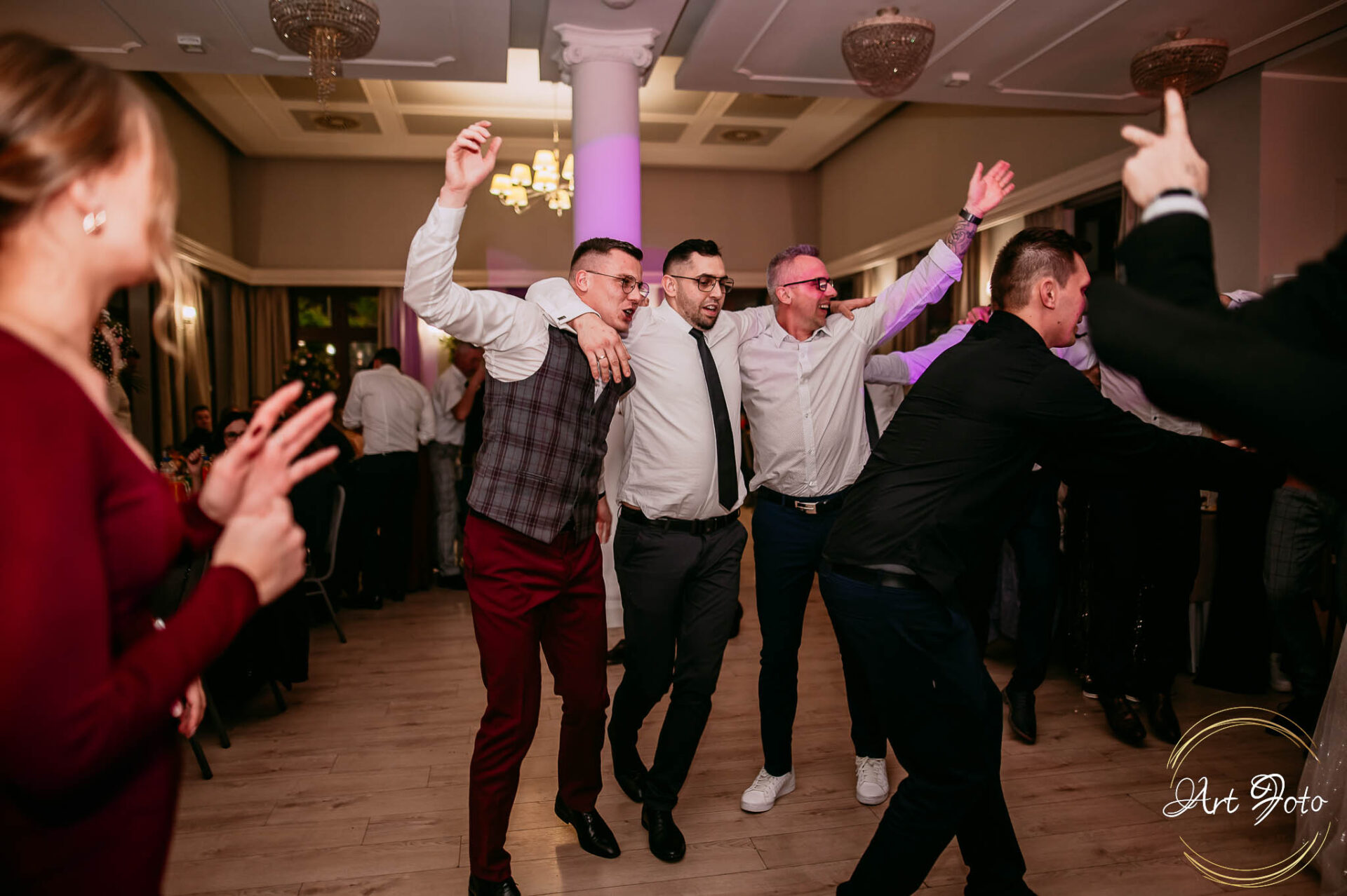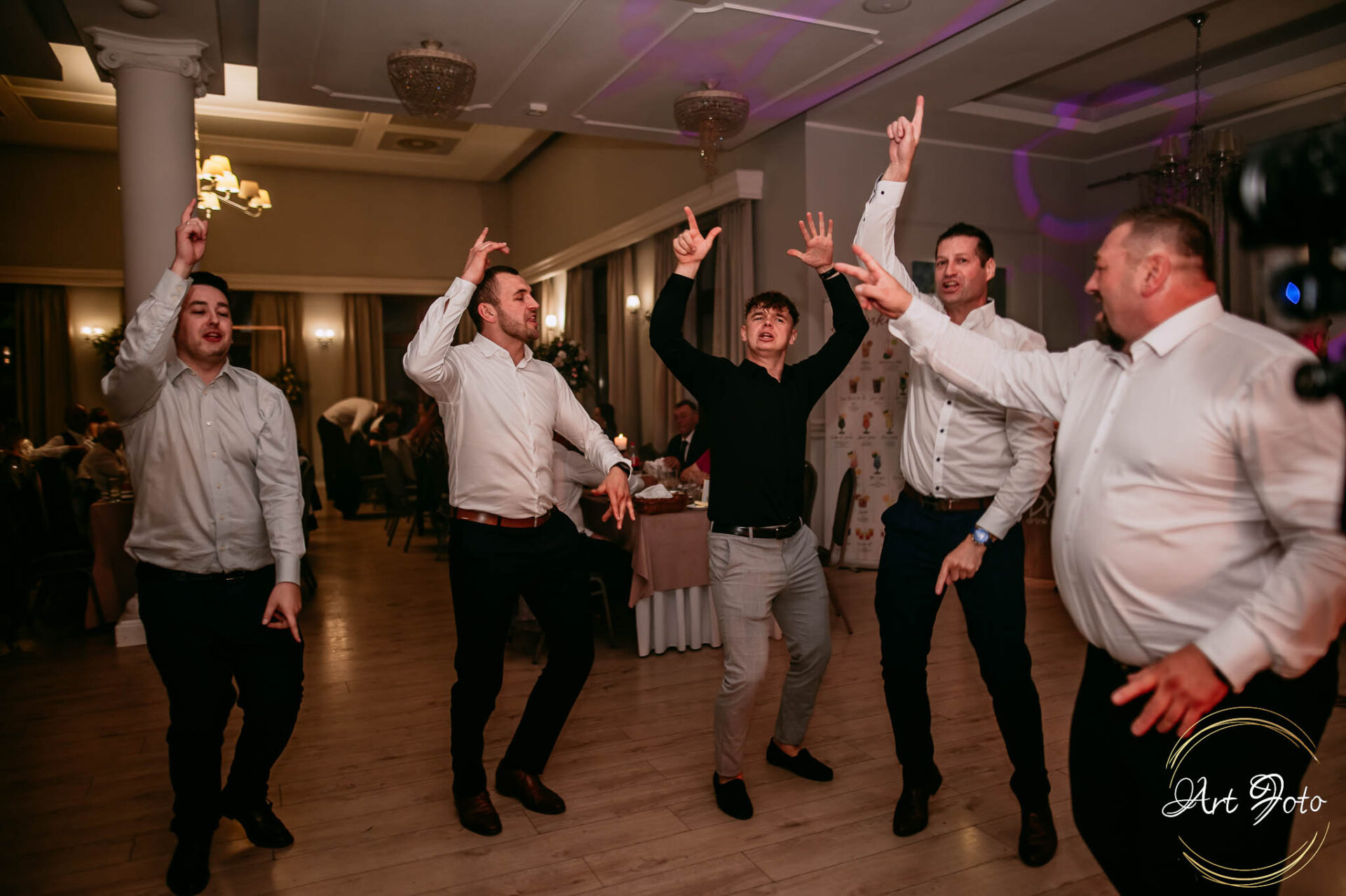 Po oficjalnej części przyszedł czas na prawdziwe świętowanie! Szaleństwo na parkiecie, wspólne przyśpiewki, oczepiny, a ja – niczym żywa fotobudka – łapałam w kadrach szczere uśmiechy, szalone układy taneczne i spontaniczne chwile radości. Bo przecież to właśnie one sprawiają, że wesele zostaje w pamięci na długo.