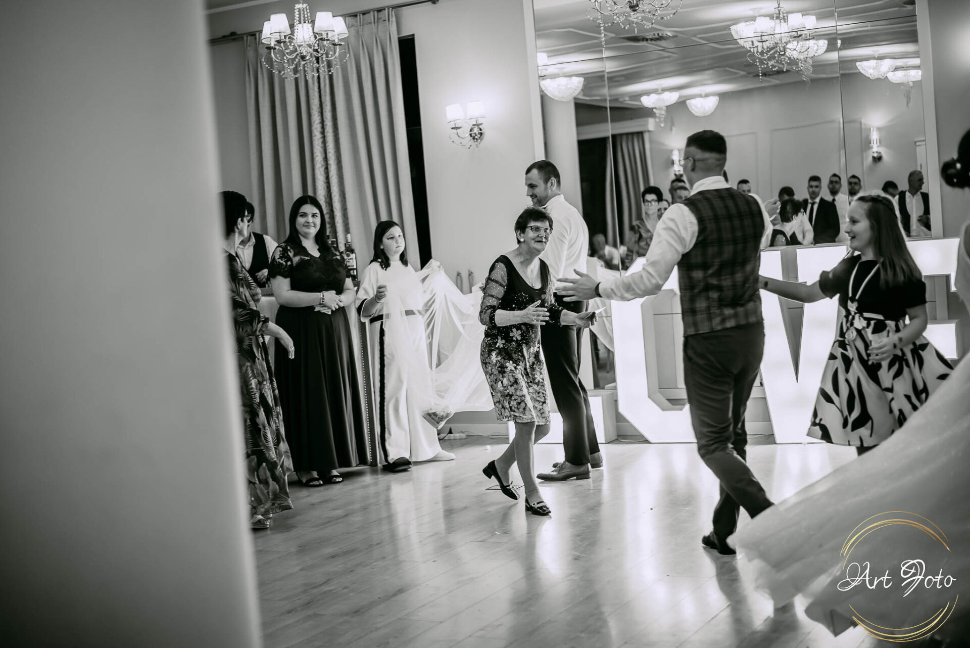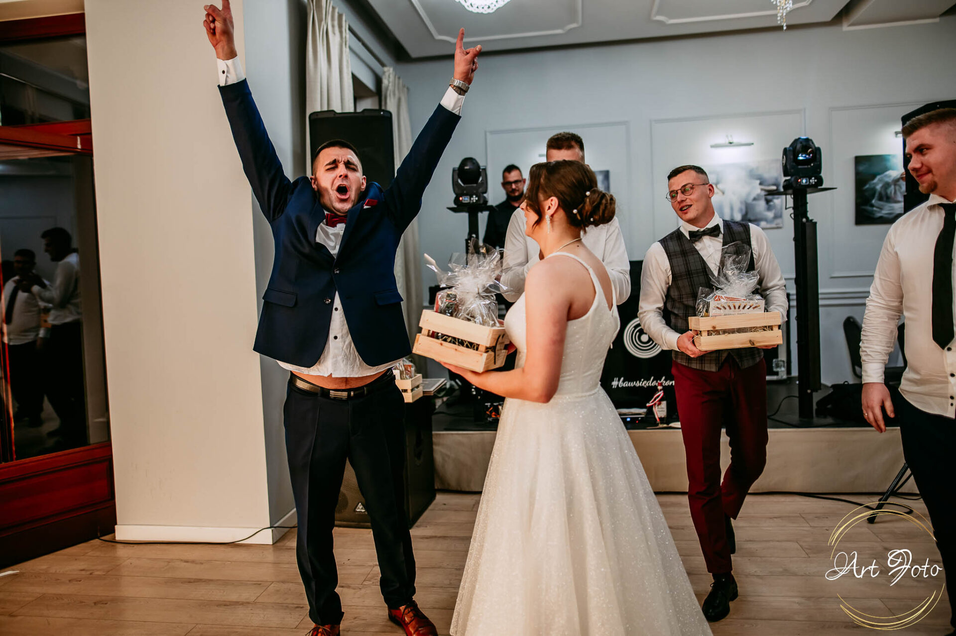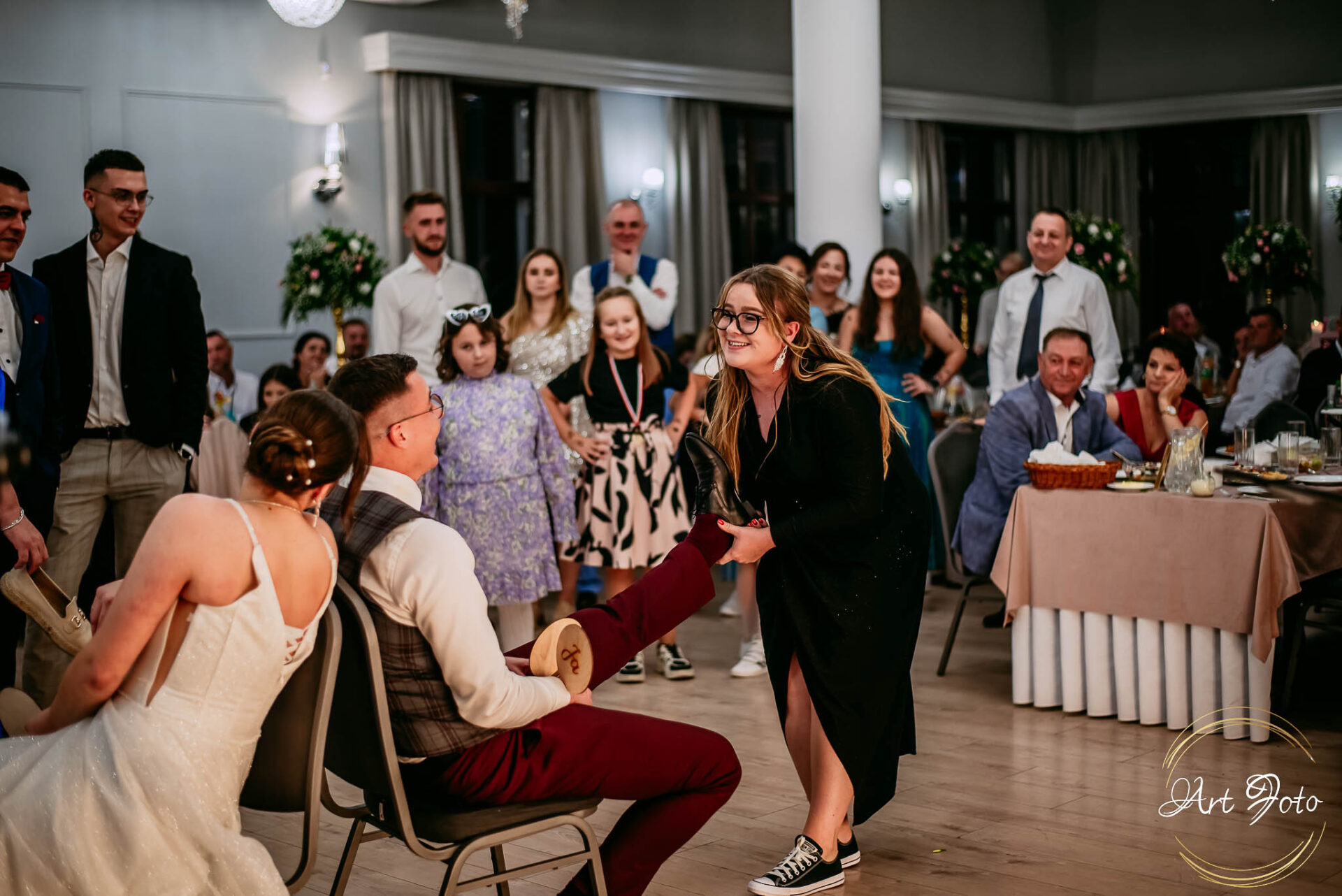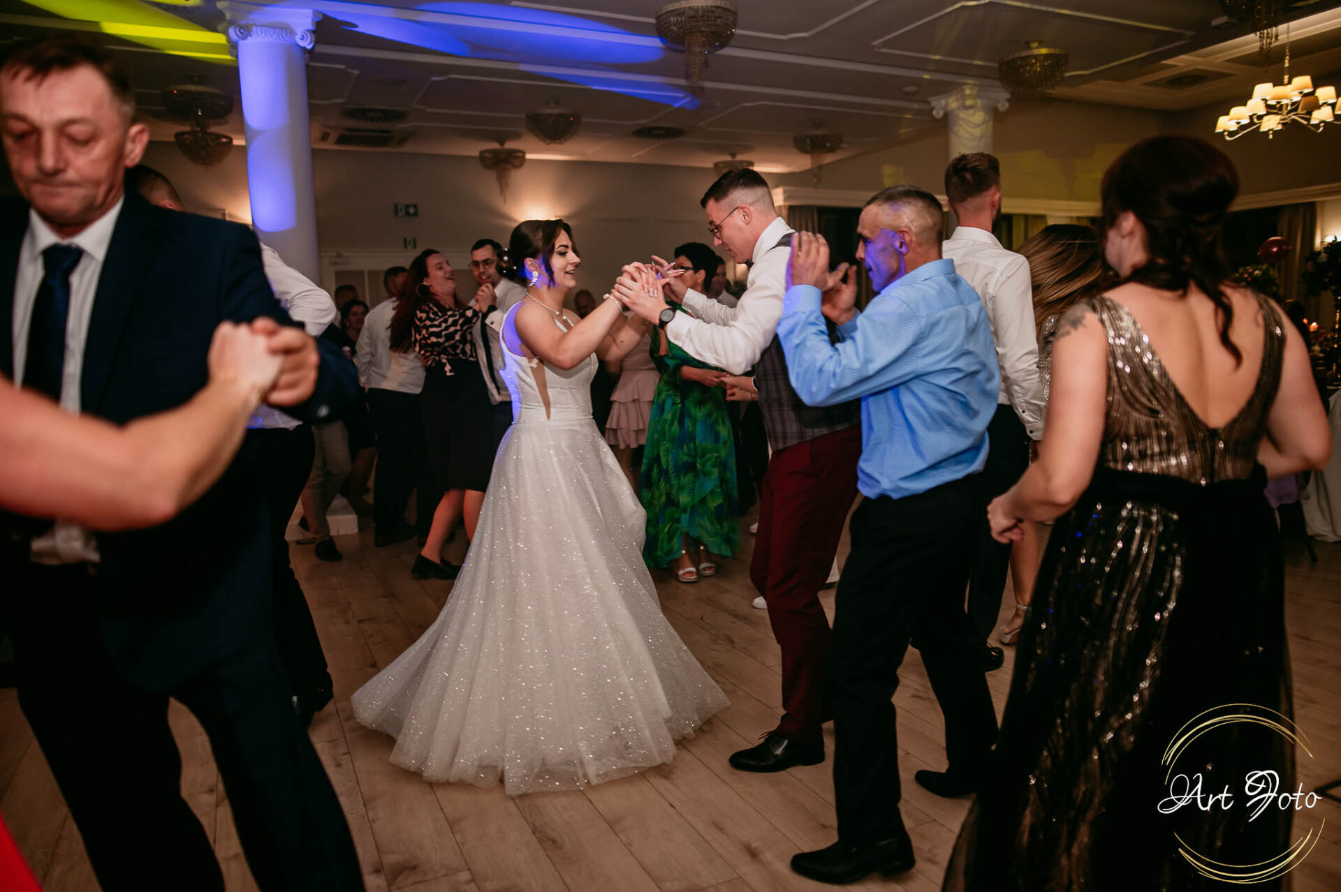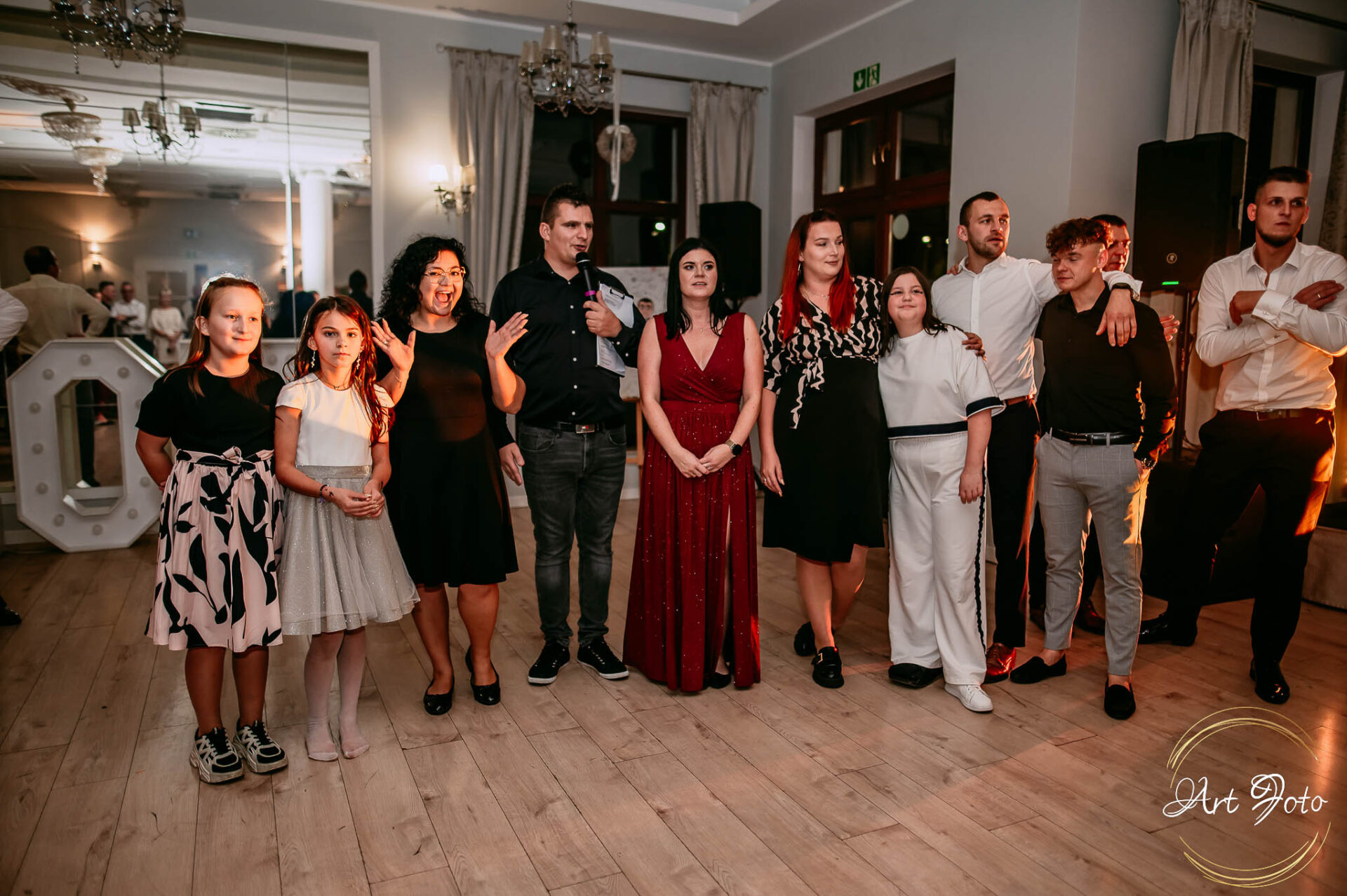 Po oficjalnej części przyszedł czas na prawdziwe świętowanie! Szaleństwo na parkiecie, wspólne przyśpiewki, oczepiny, a ja – niczym żywa fotobudka – łapałam w kadrach szczere uśmiechy, szalone układy taneczne i spontaniczne chwile radości. Bo przecież to właśnie one sprawiają, że wesele zostaje w pamięci na długo.