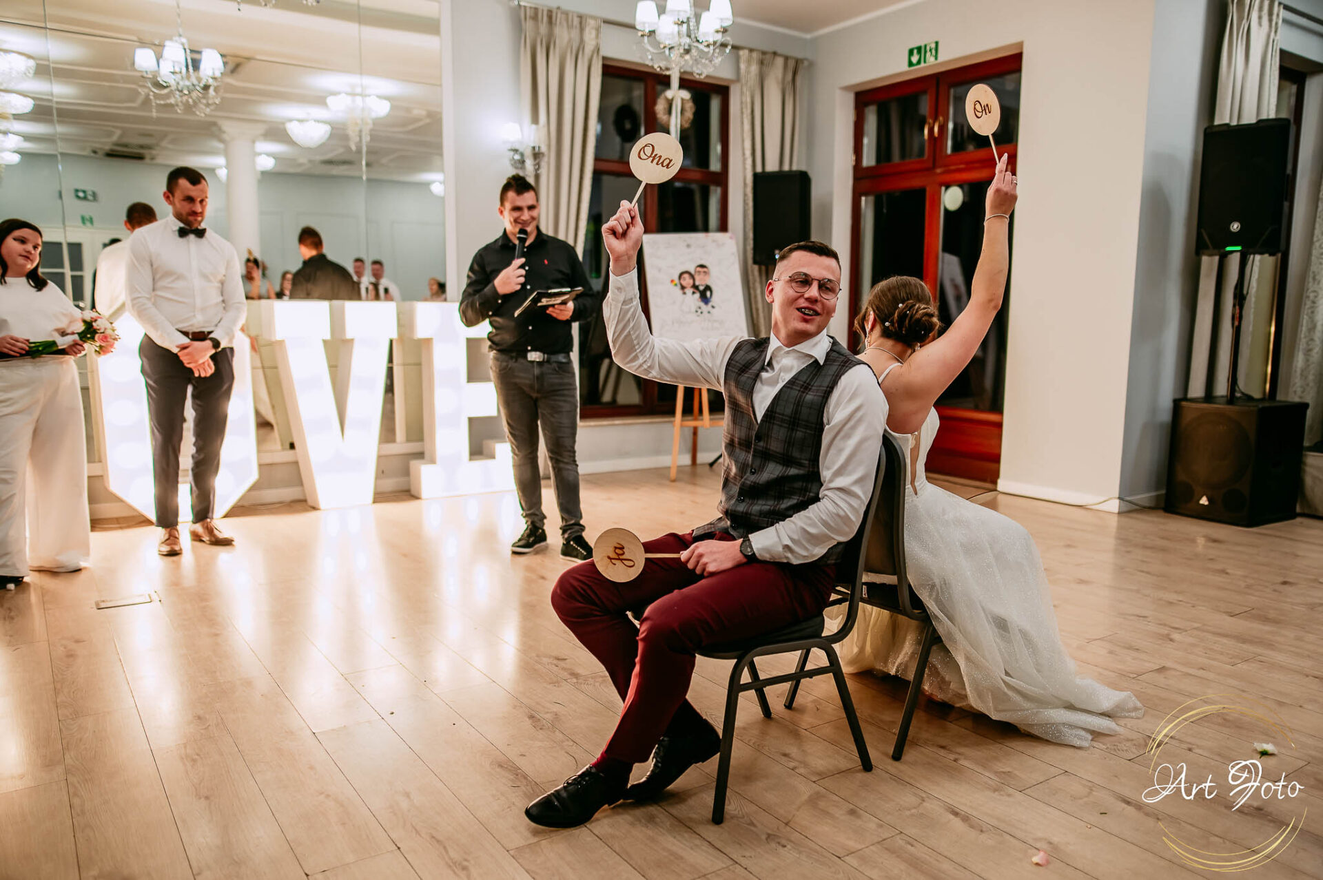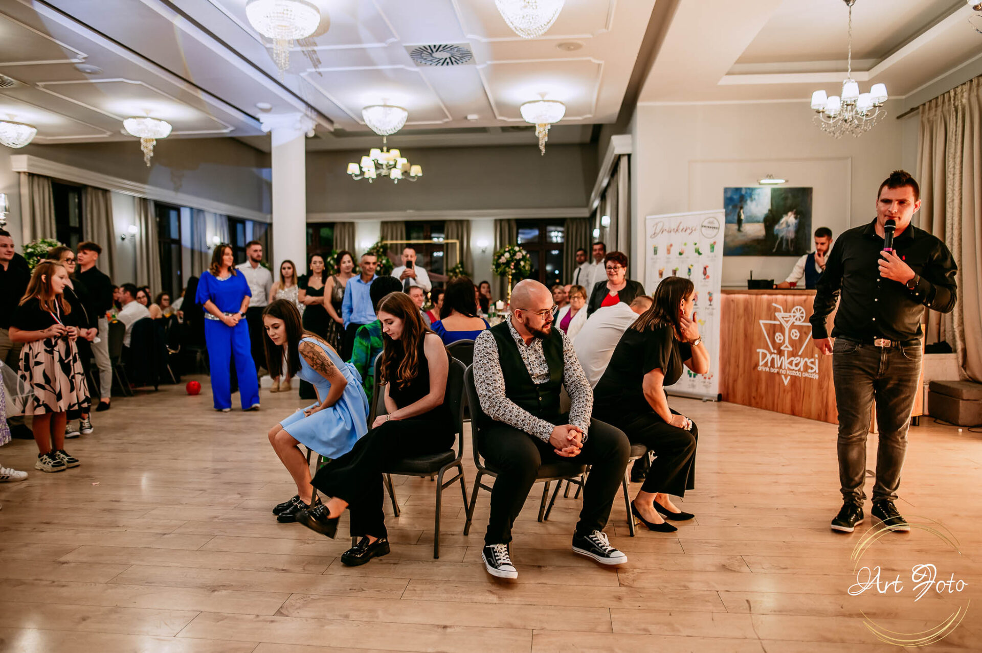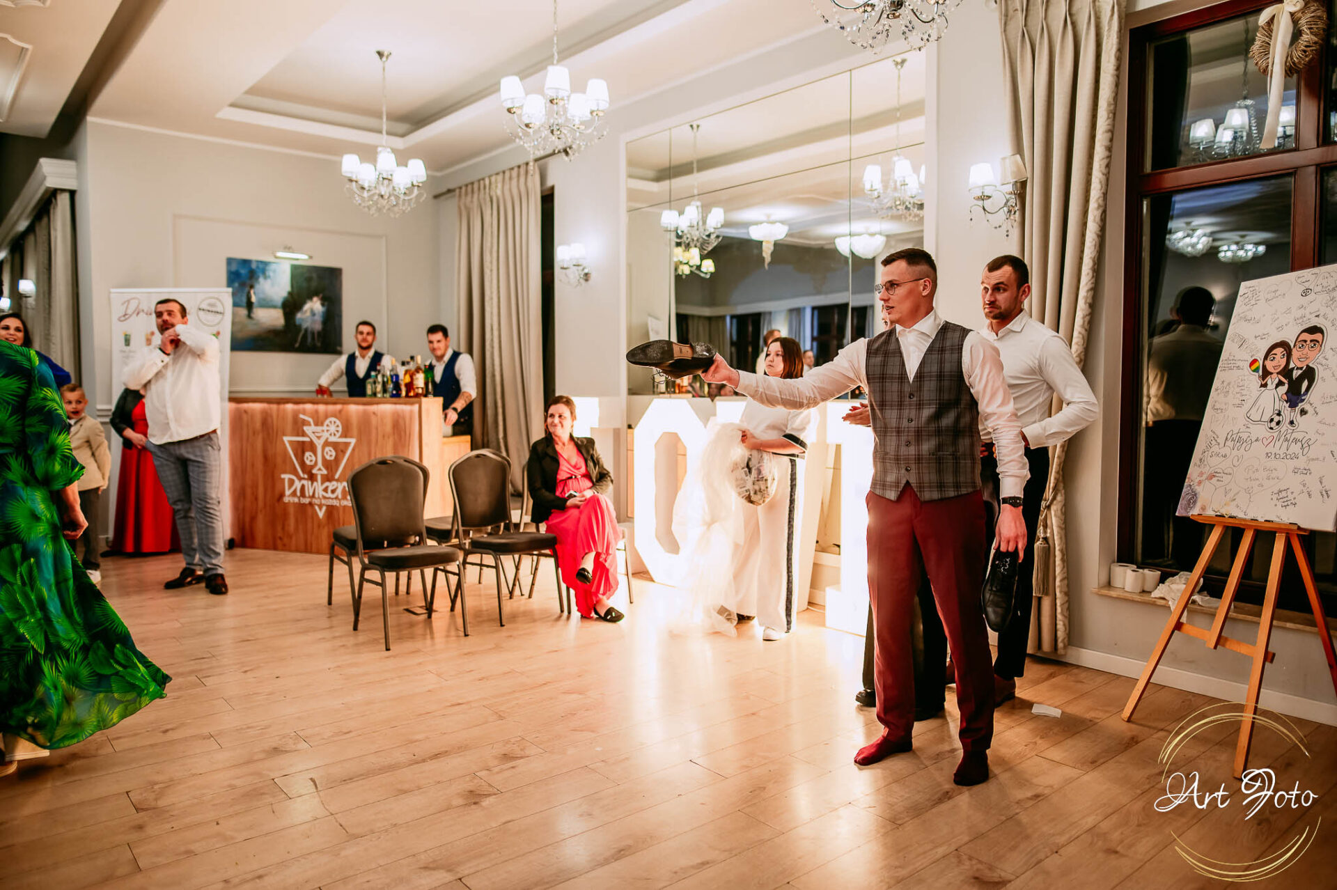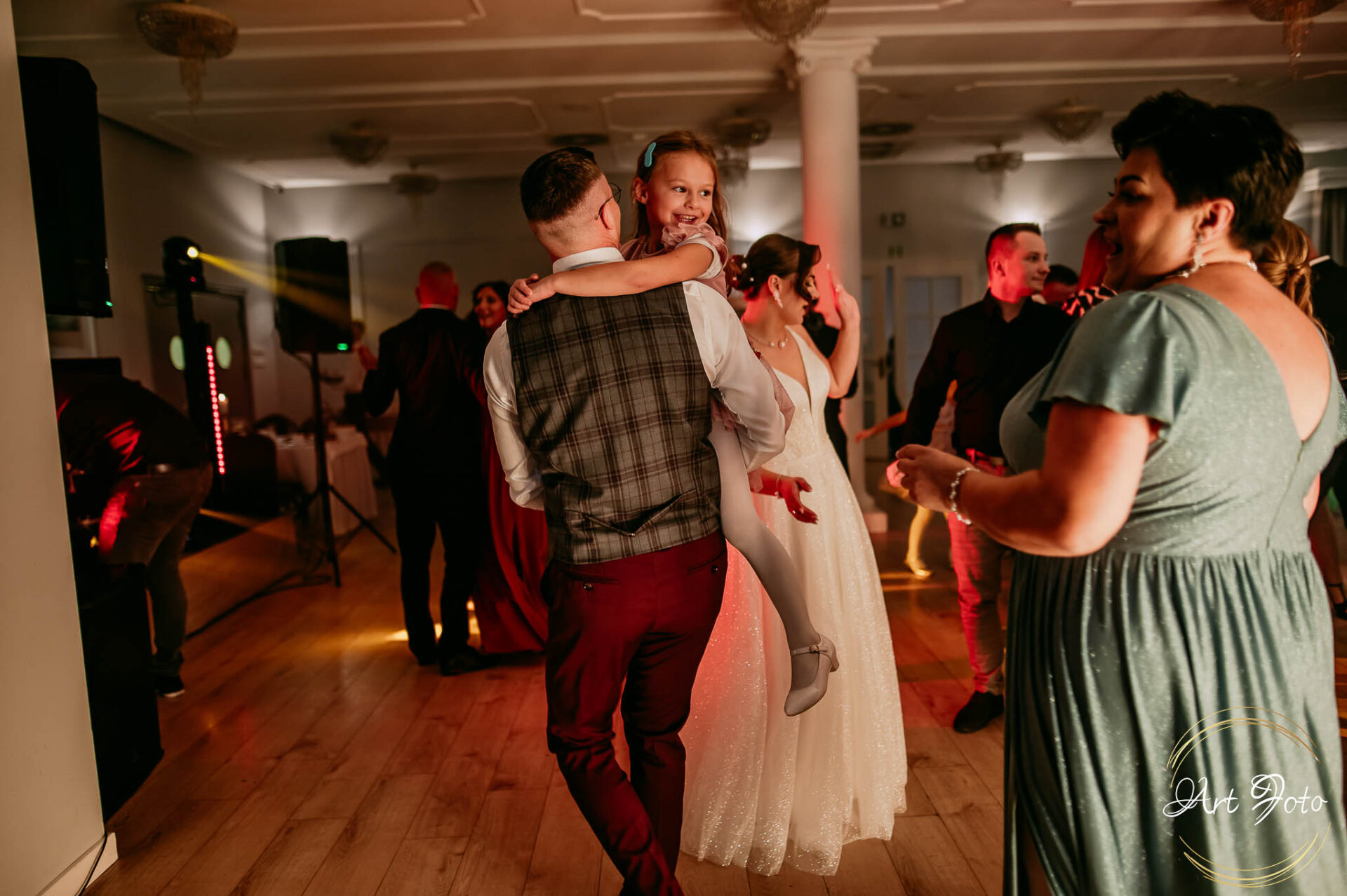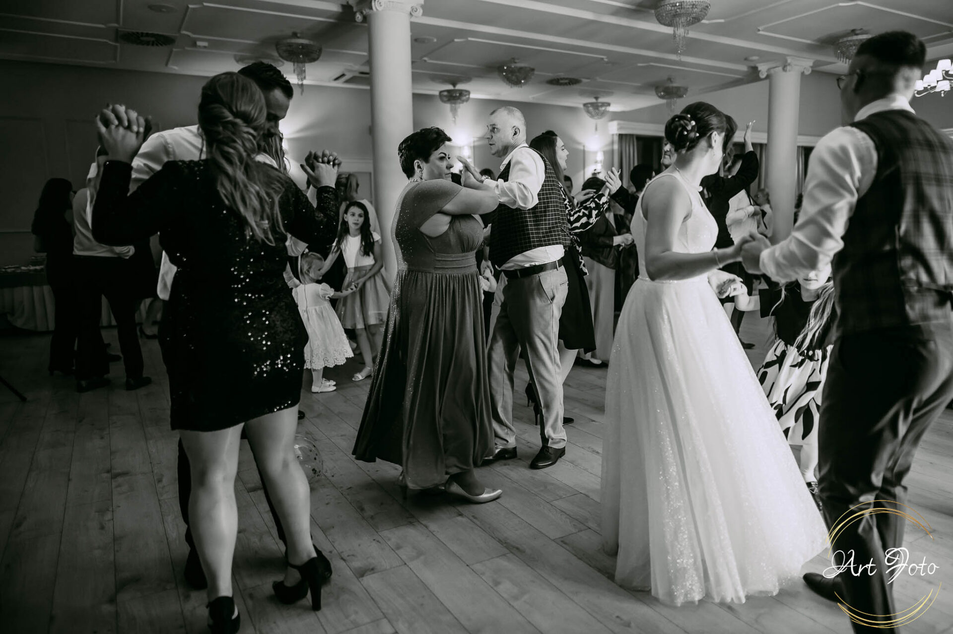 Po oficjalnej części przyszedł czas na prawdziwe świętowanie! Szaleństwo na parkiecie, wspólne przyśpiewki, oczepiny, a ja – niczym żywa fotobudka – łapałam w kadrach szczere uśmiechy, szalone układy taneczne i spontaniczne chwile radości. Bo przecież to właśnie one sprawiają, że wesele zostaje w pamięci na długo.