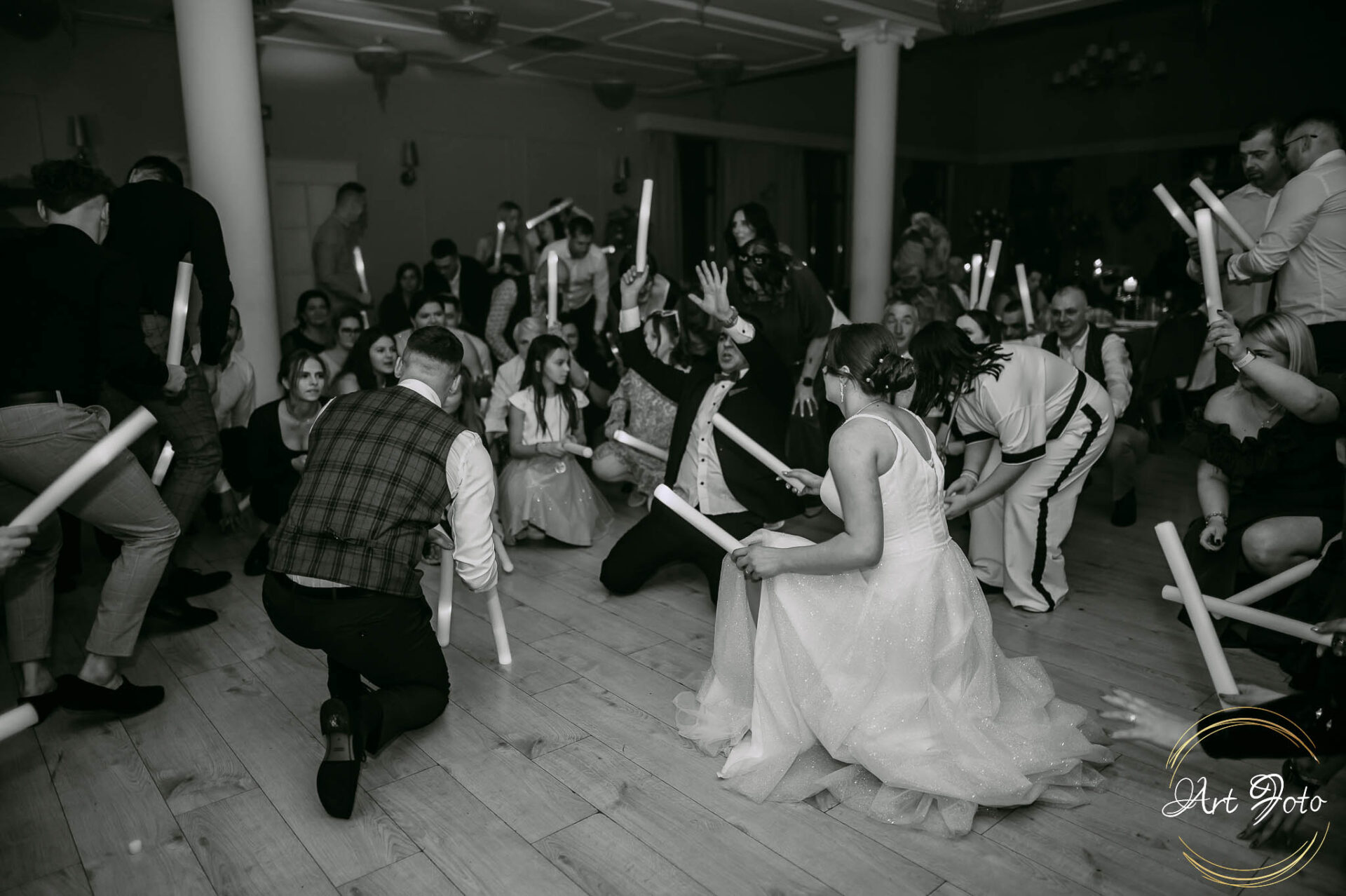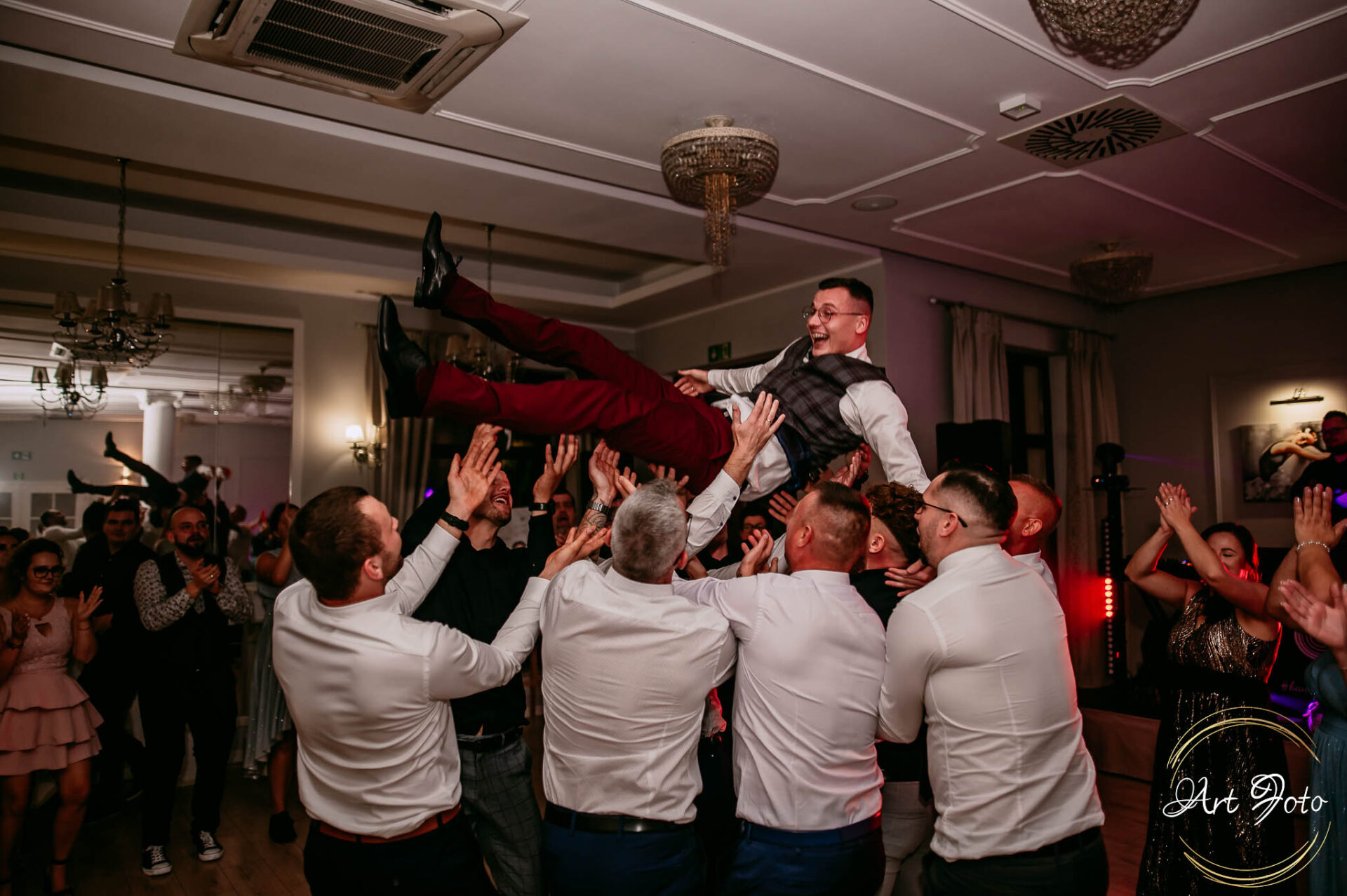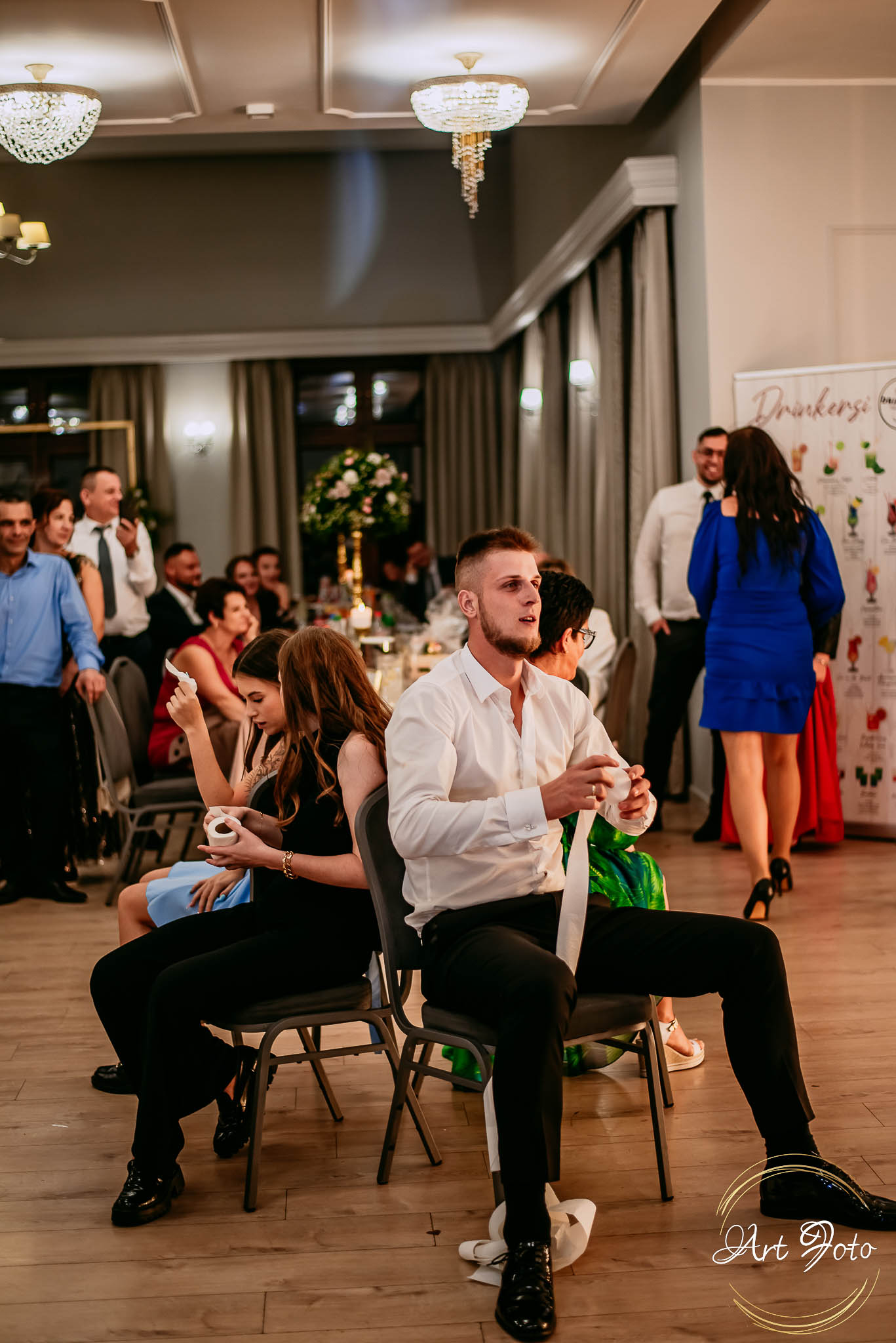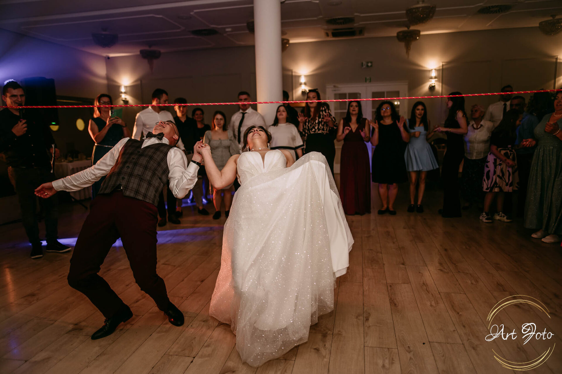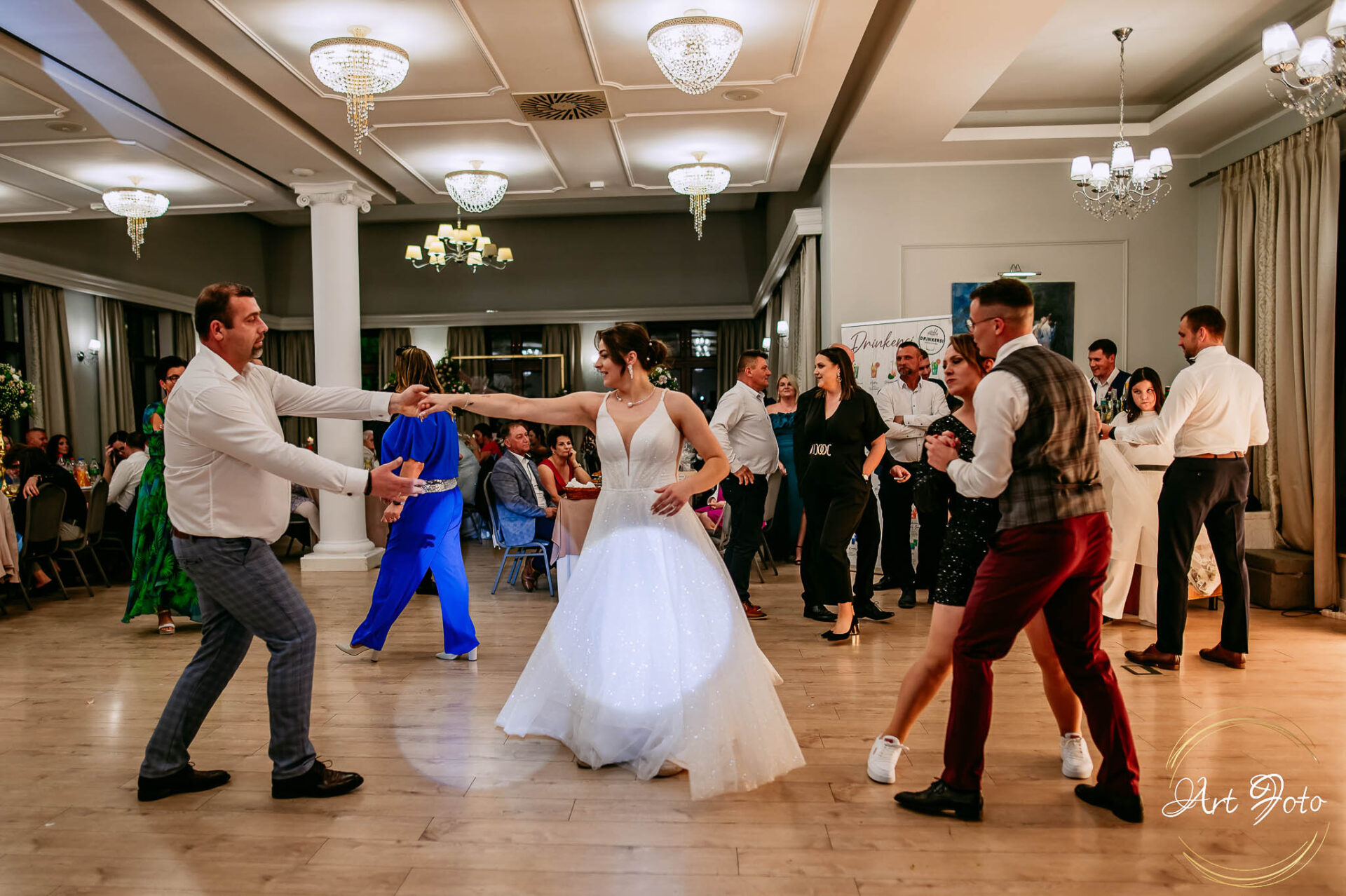 Po oficjalnej części przyszedł czas na prawdziwe świętowanie! Szaleństwo na parkiecie, wspólne przyśpiewki, oczepiny, a ja – niczym żywa fotobudka – łapałam w kadrach szczere uśmiechy, szalone układy taneczne i spontaniczne chwile radości. Bo przecież to właśnie one sprawiają, że wesele zostaje w pamięci na długo.