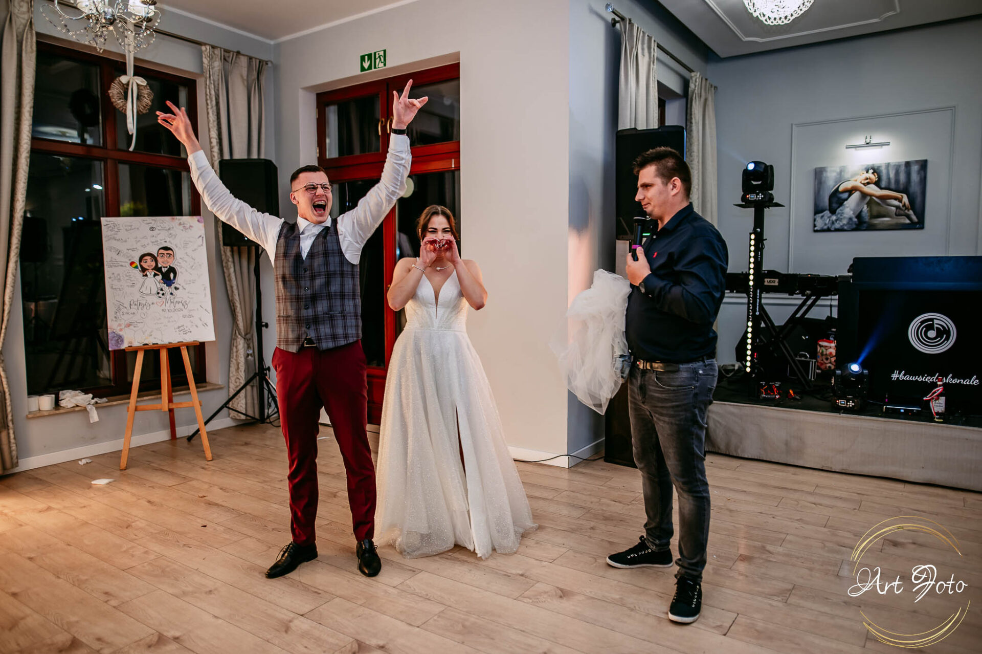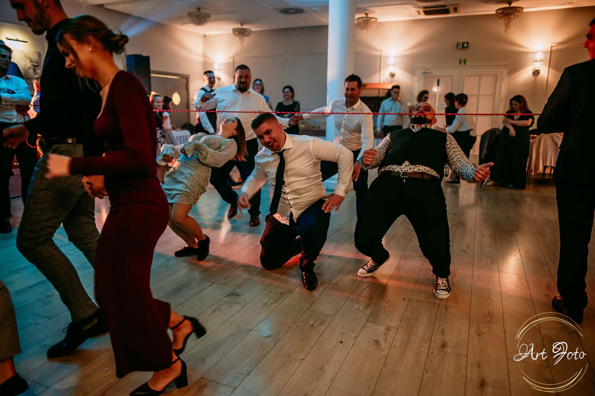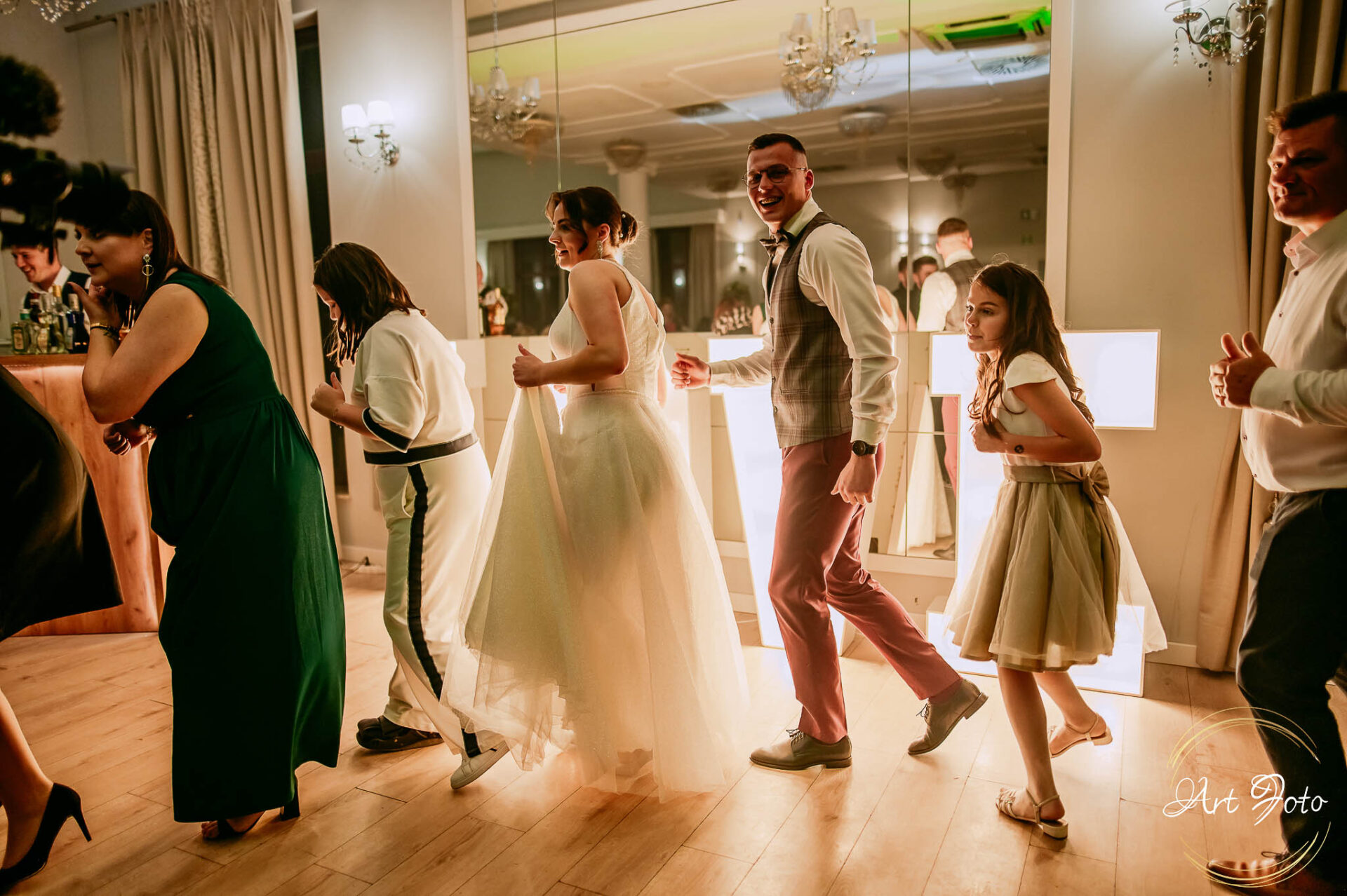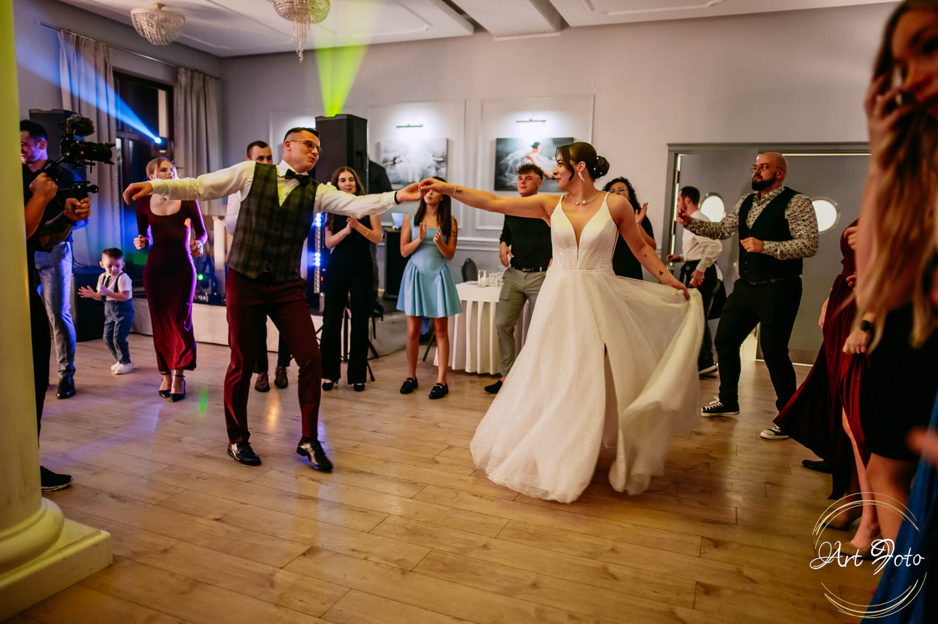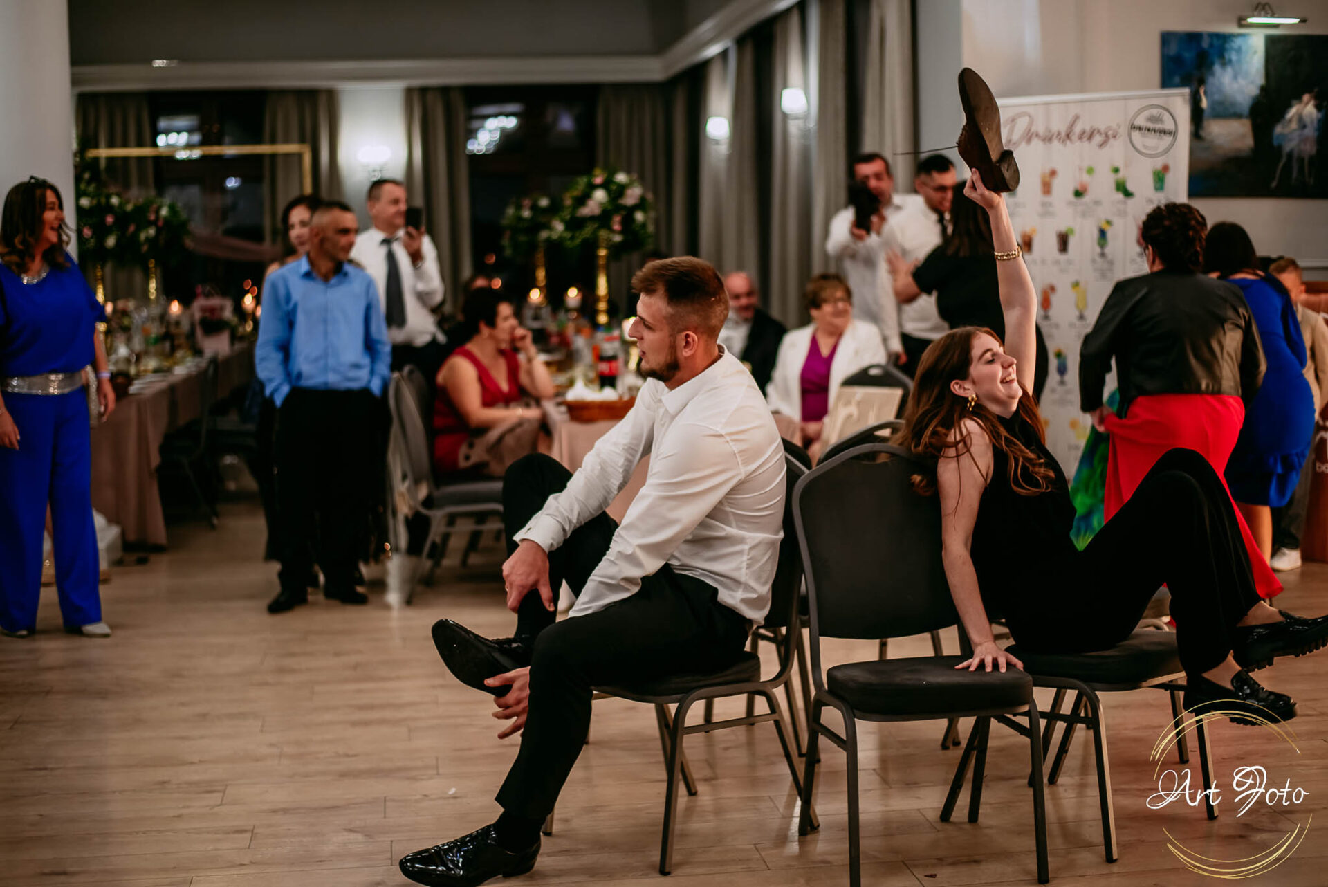 Po oficjalnej części przyszedł czas na prawdziwe świętowanie! Szaleństwo na parkiecie, wspólne przyśpiewki, oczepiny, a ja – niczym żywa fotobudka – łapałam w kadrach szczere uśmiechy, szalone układy taneczne i spontaniczne chwile radości. Bo przecież to właśnie one sprawiają, że wesele zostaje w pamięci na długo.