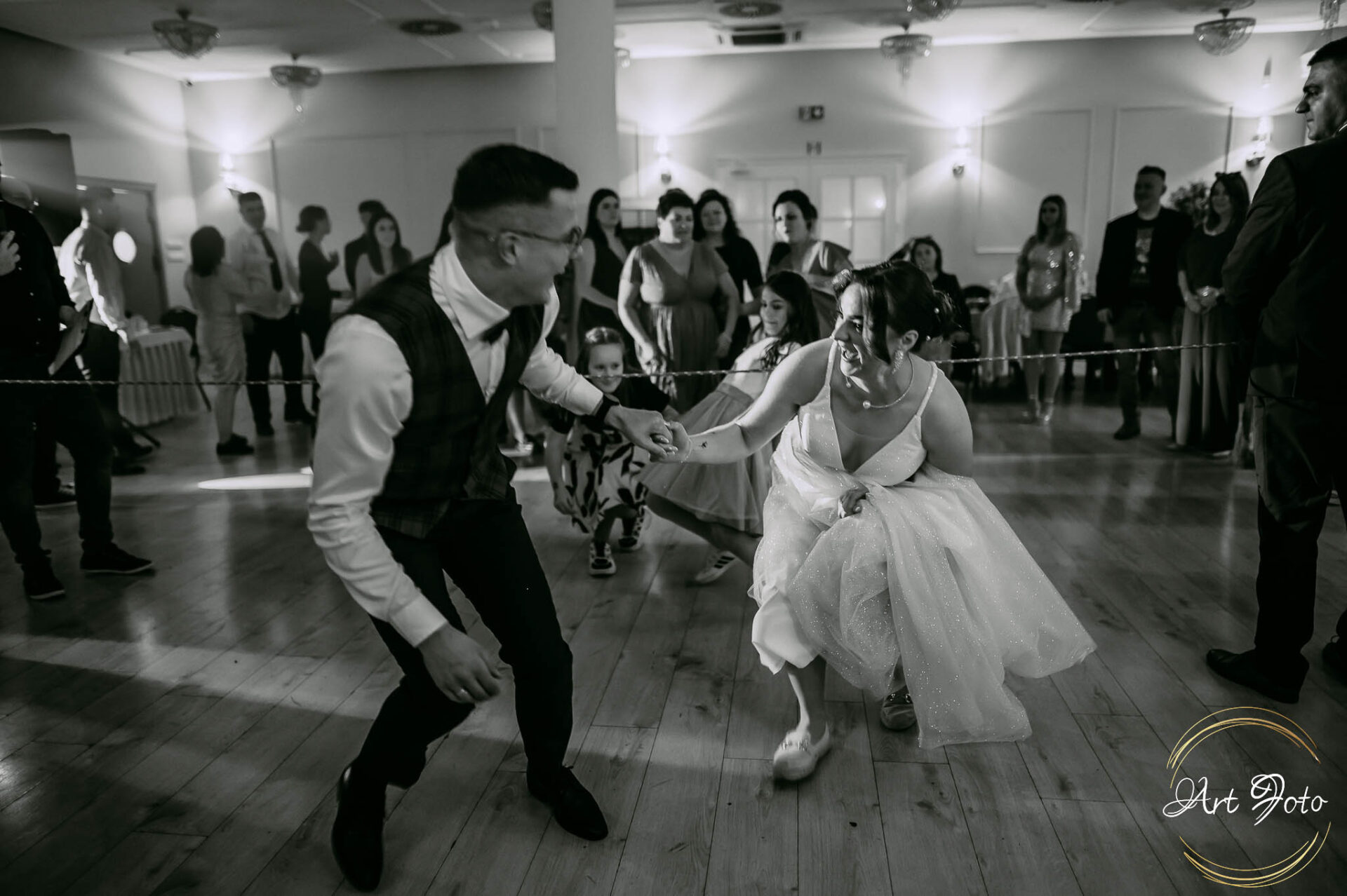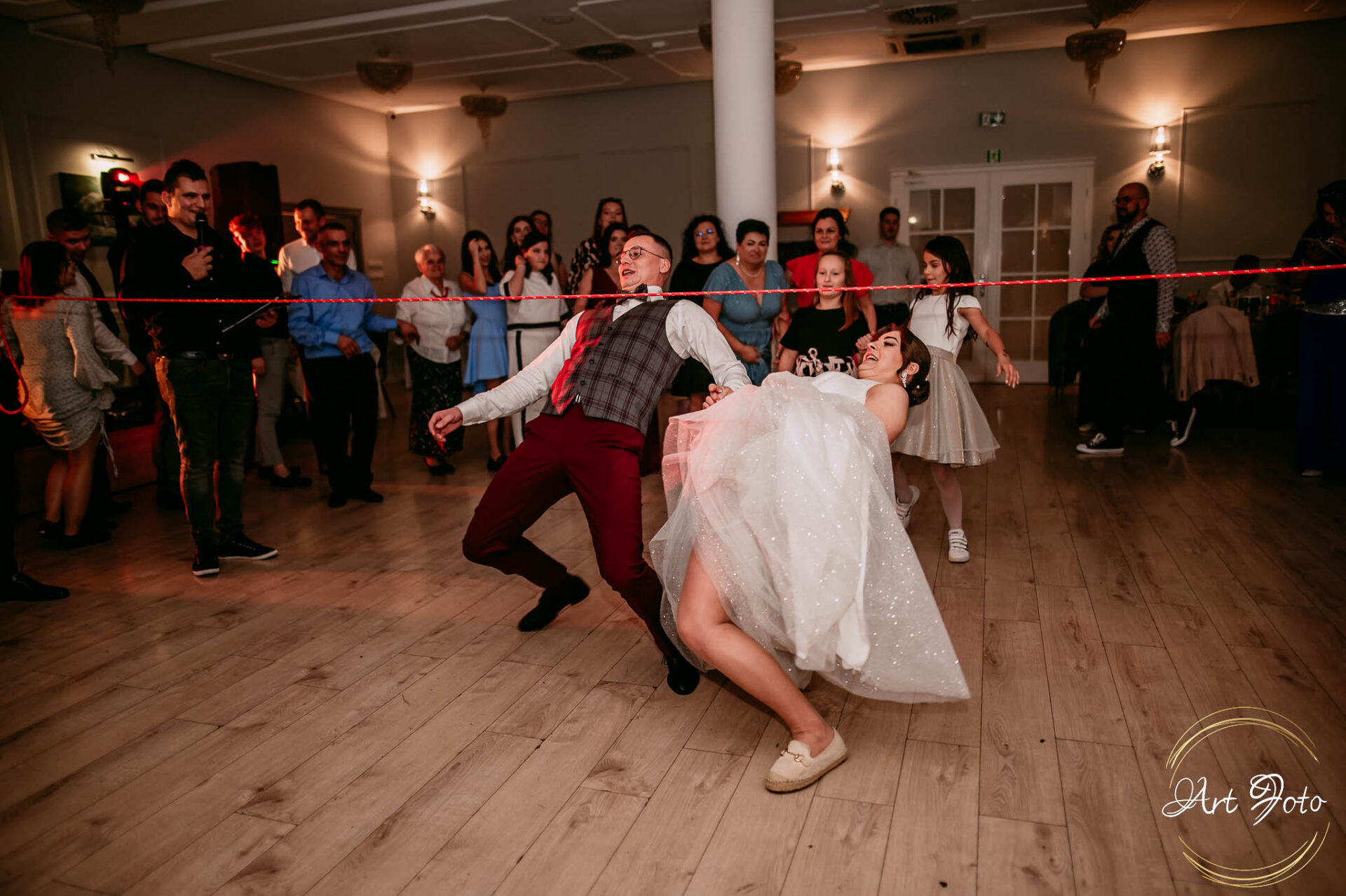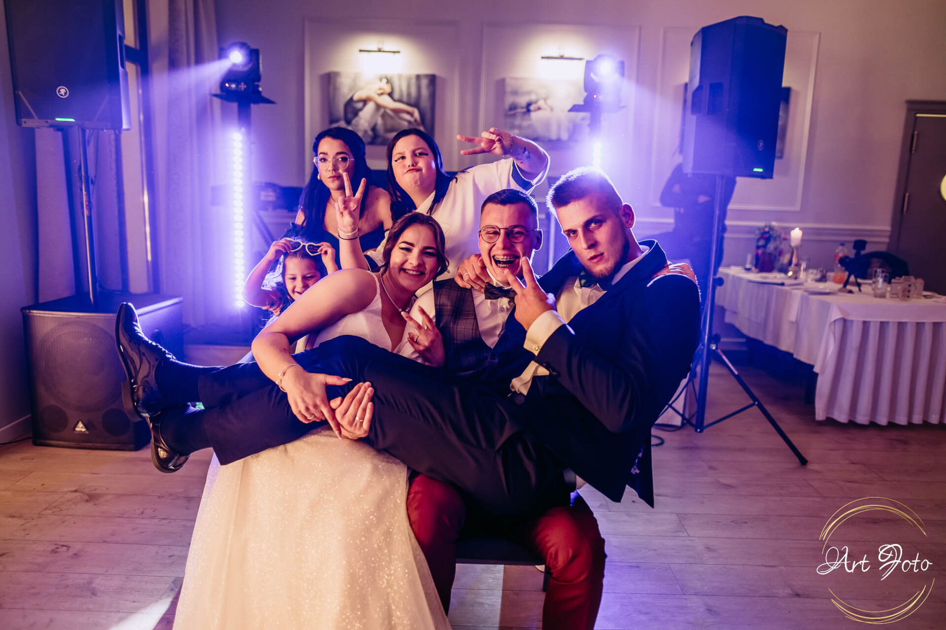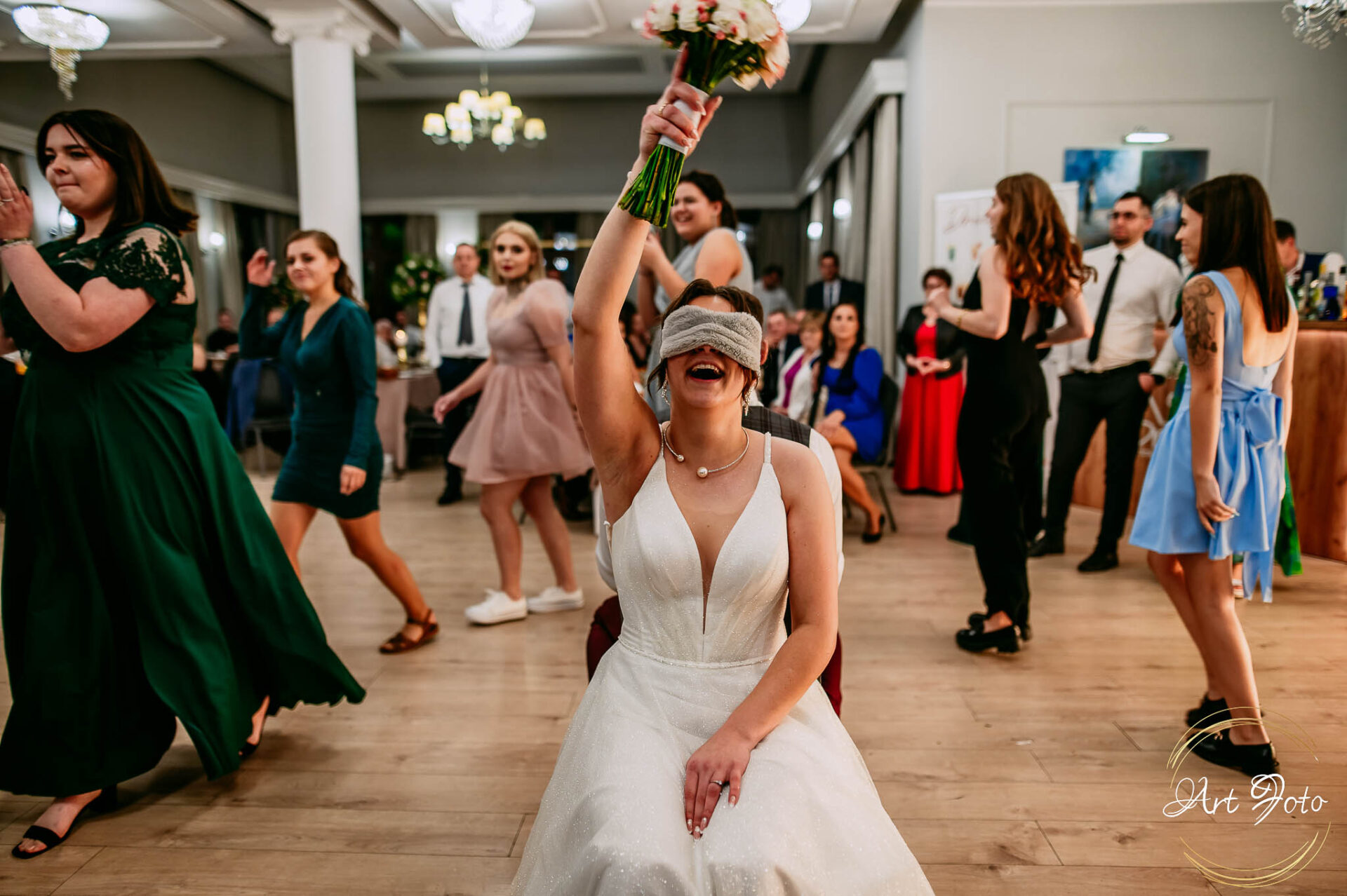 Po oficjalnej części przyszedł czas na prawdziwe świętowanie! Szaleństwo na parkiecie, wspólne przyśpiewki, oczepiny, a ja – niczym żywa fotobudka – łapałam w kadrach szczere uśmiechy, szalone układy taneczne i spontaniczne chwile radości. Bo przecież to właśnie one sprawiają, że wesele zostaje w pamięci na długo.