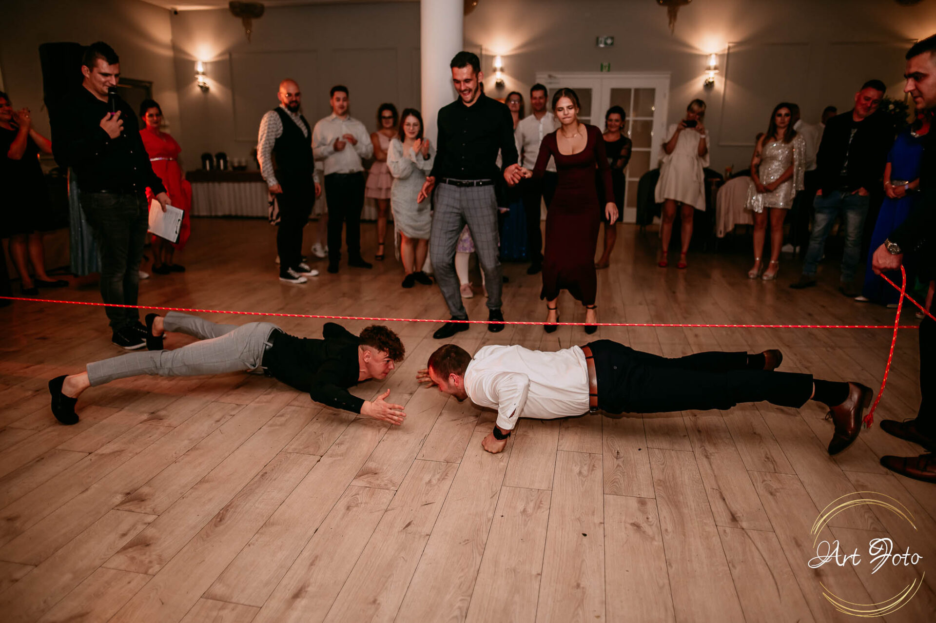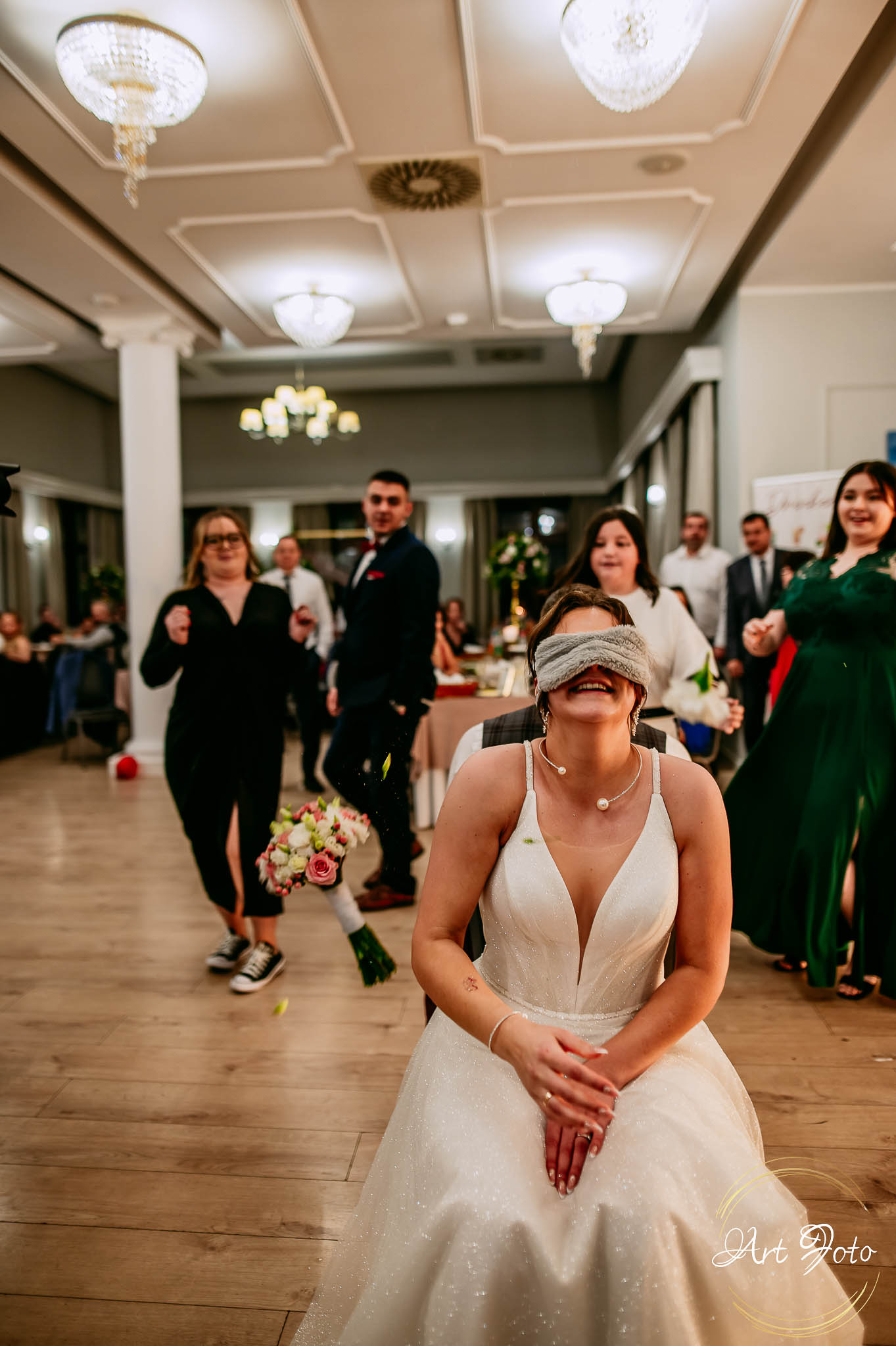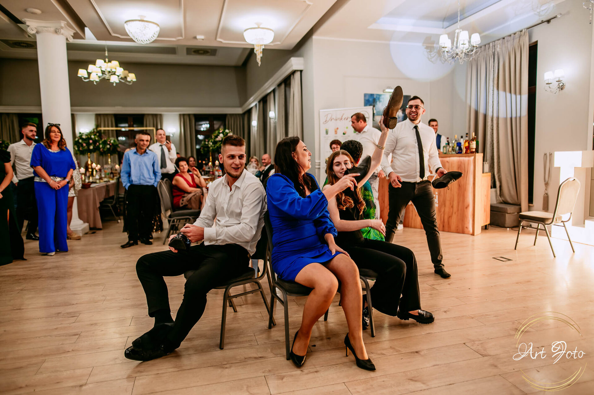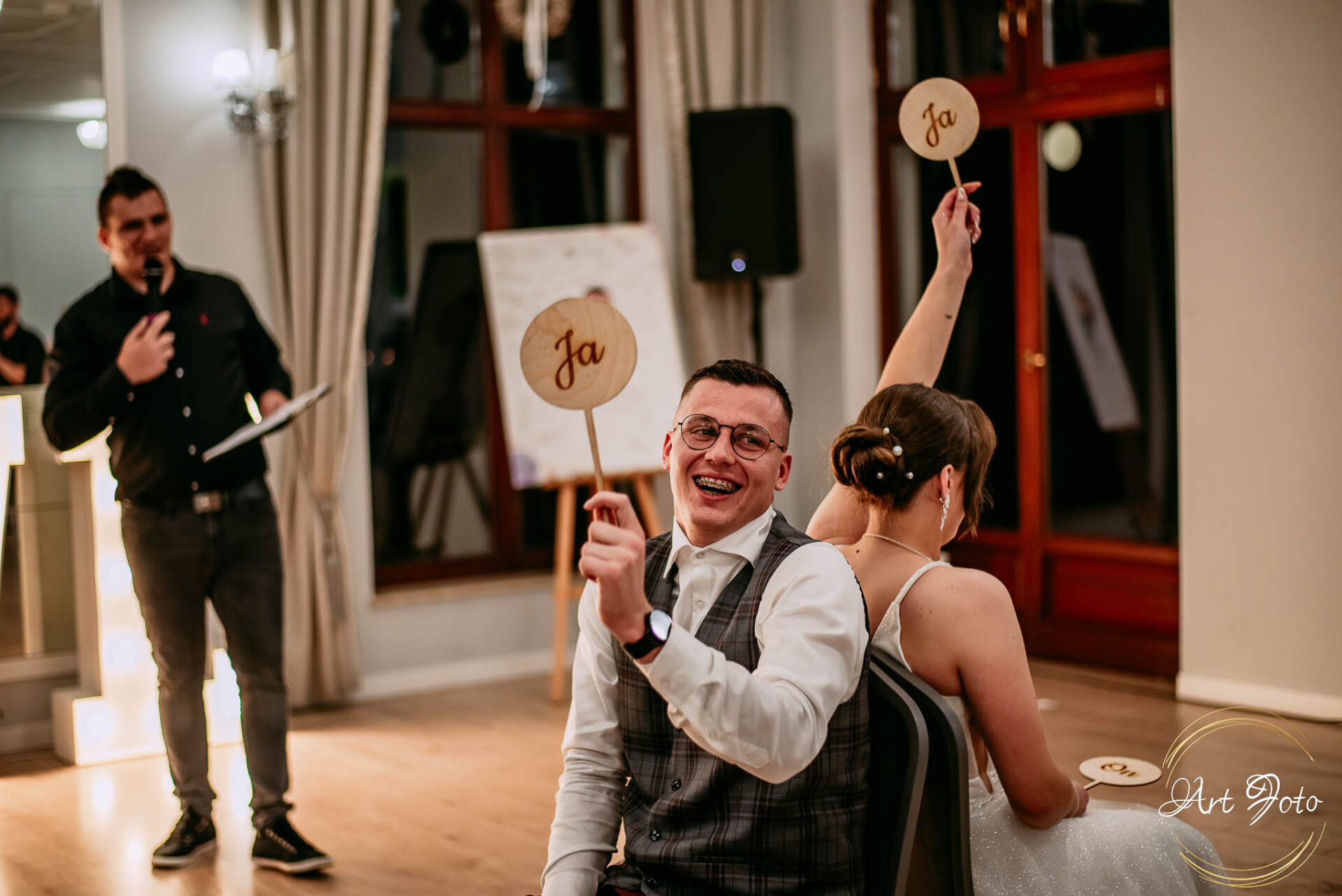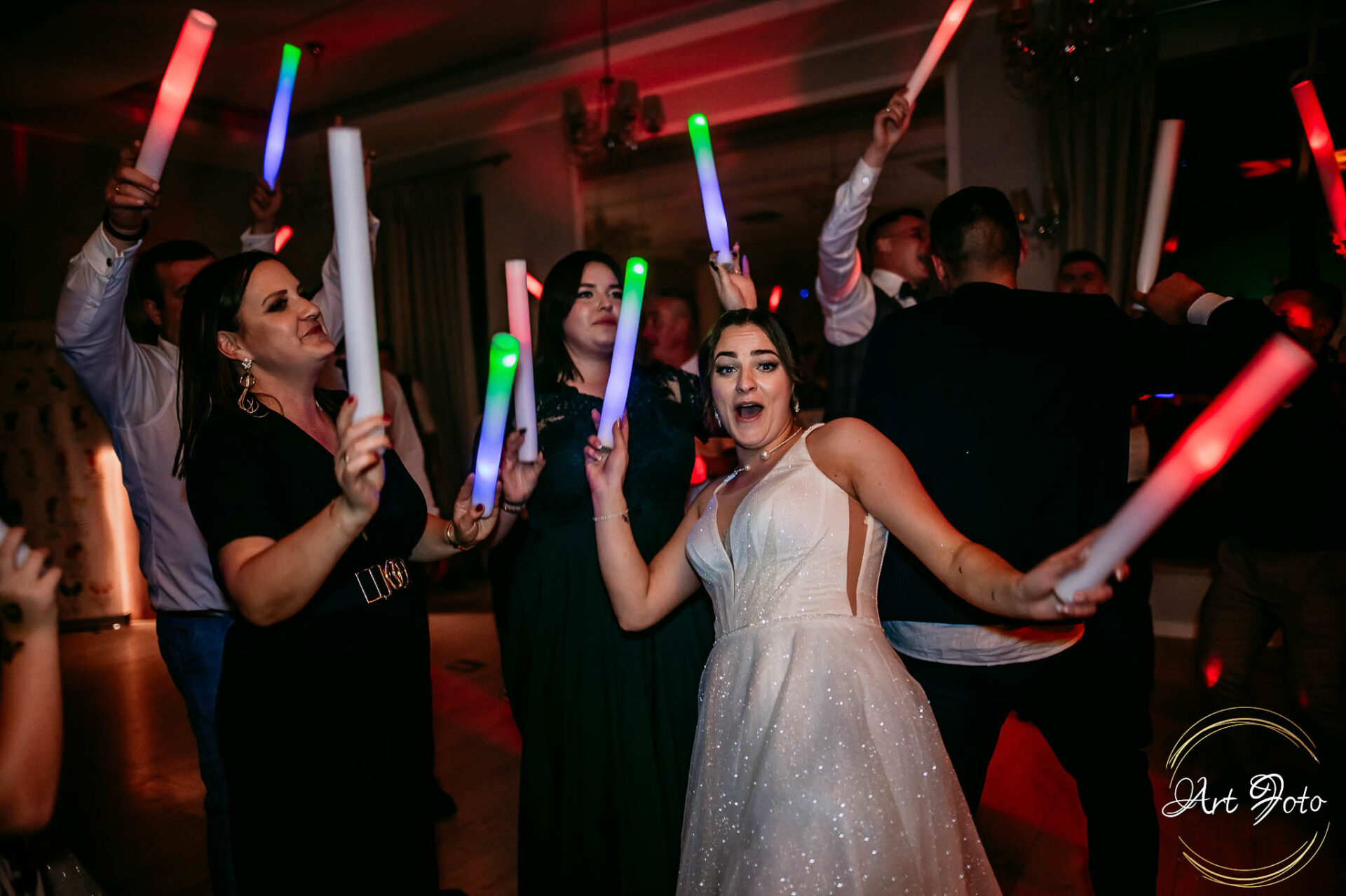 Po oficjalnej części przyszedł czas na prawdziwe świętowanie! Szaleństwo na parkiecie, wspólne przyśpiewki, oczepiny, a ja – niczym żywa fotobudka – łapałam w kadrach szczere uśmiechy, szalone układy taneczne i spontaniczne chwile radości. Bo przecież to właśnie one sprawiają, że wesele zostaje w pamięci na długo.