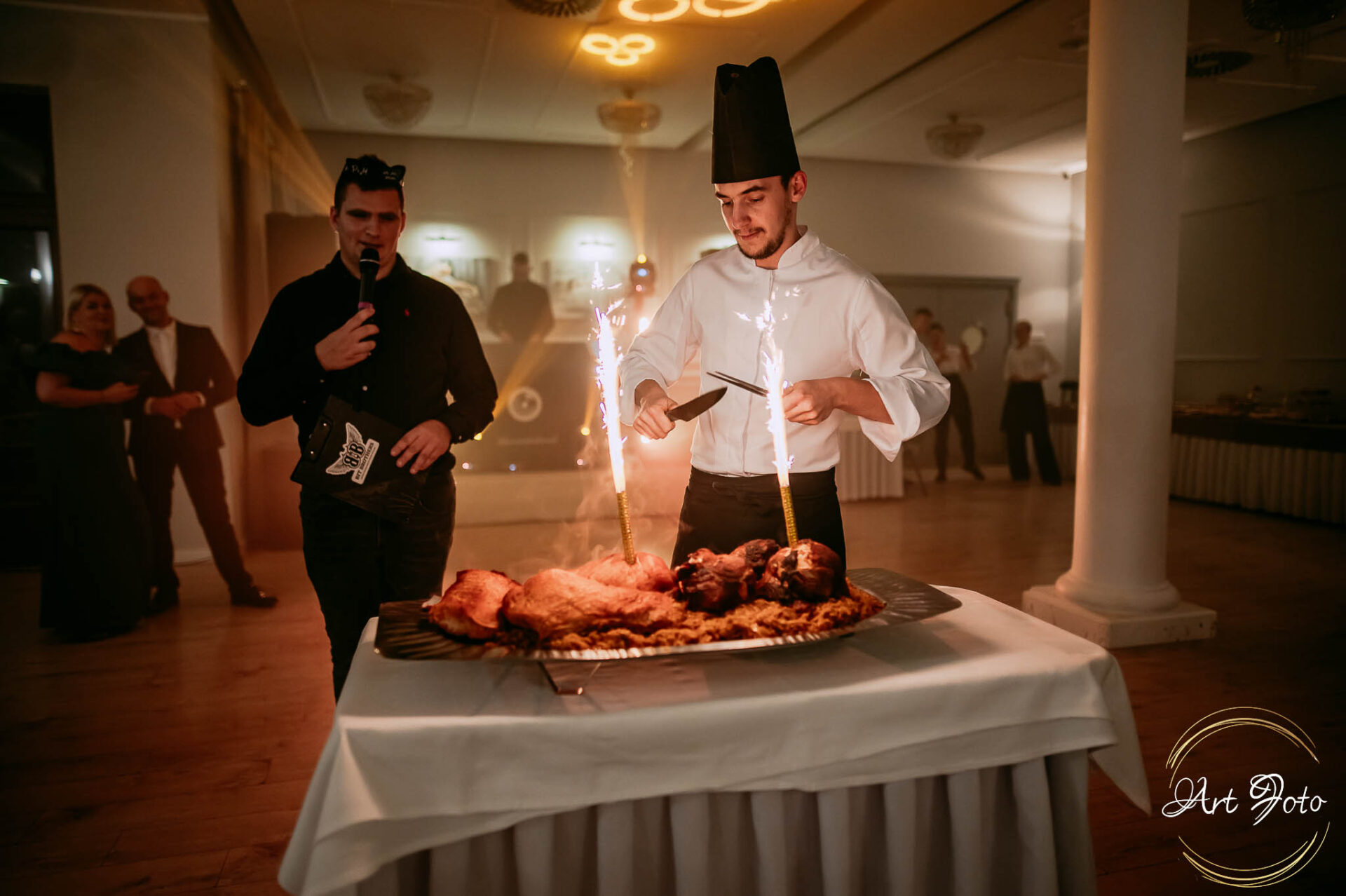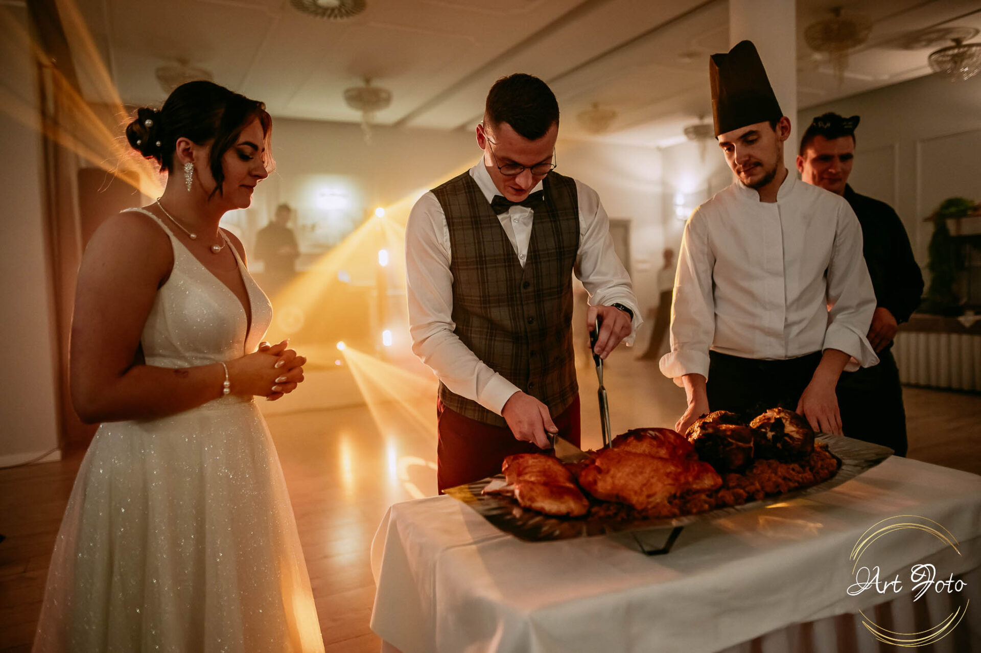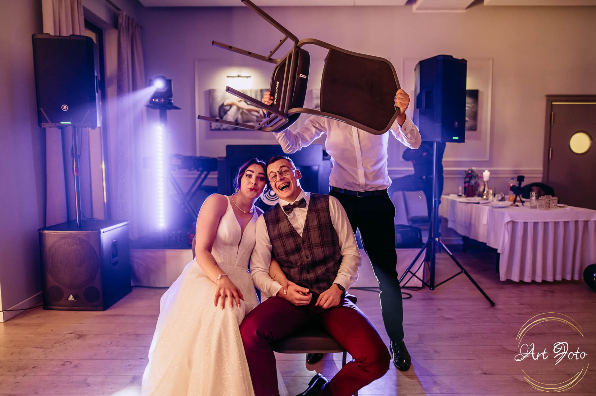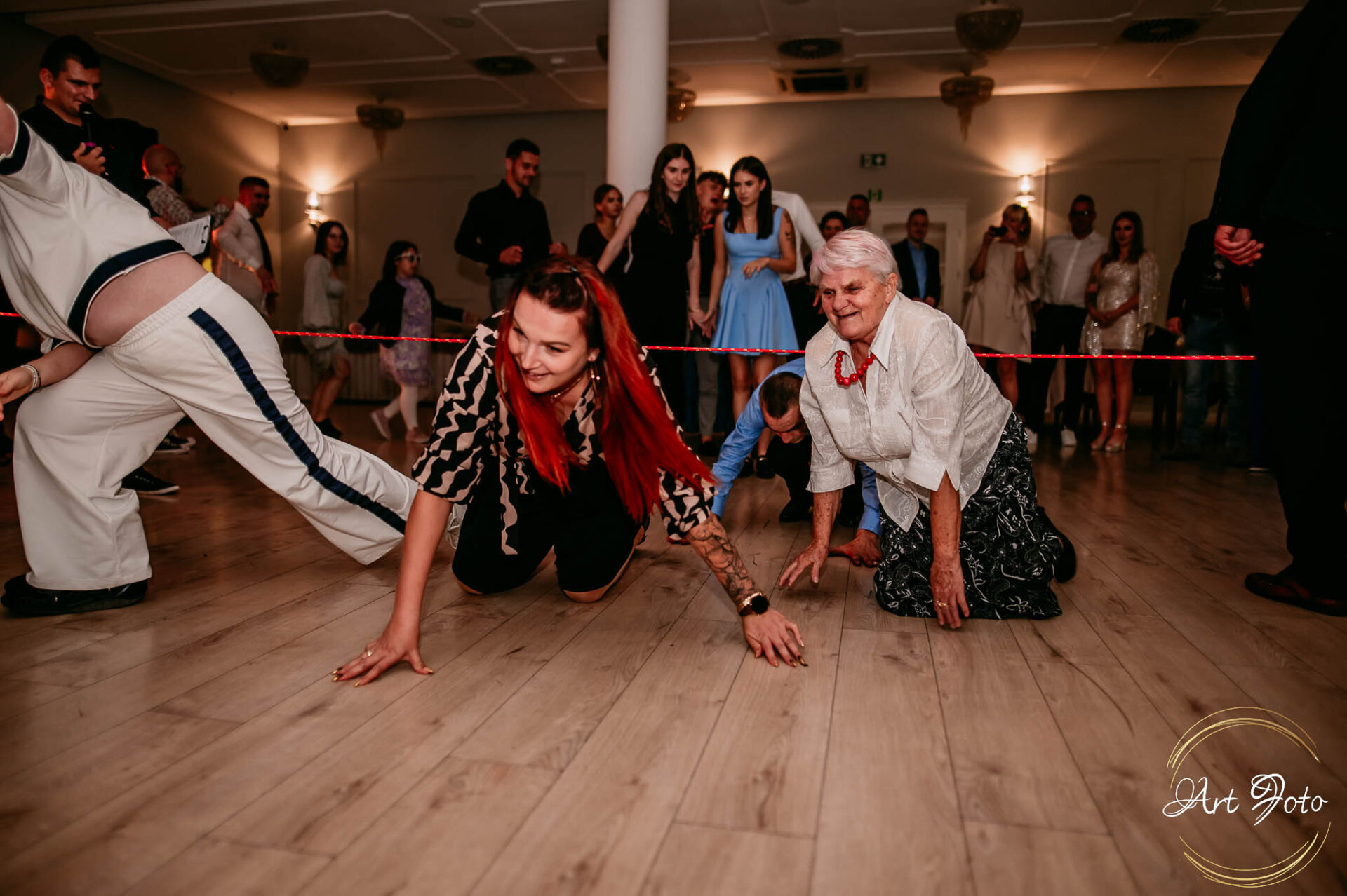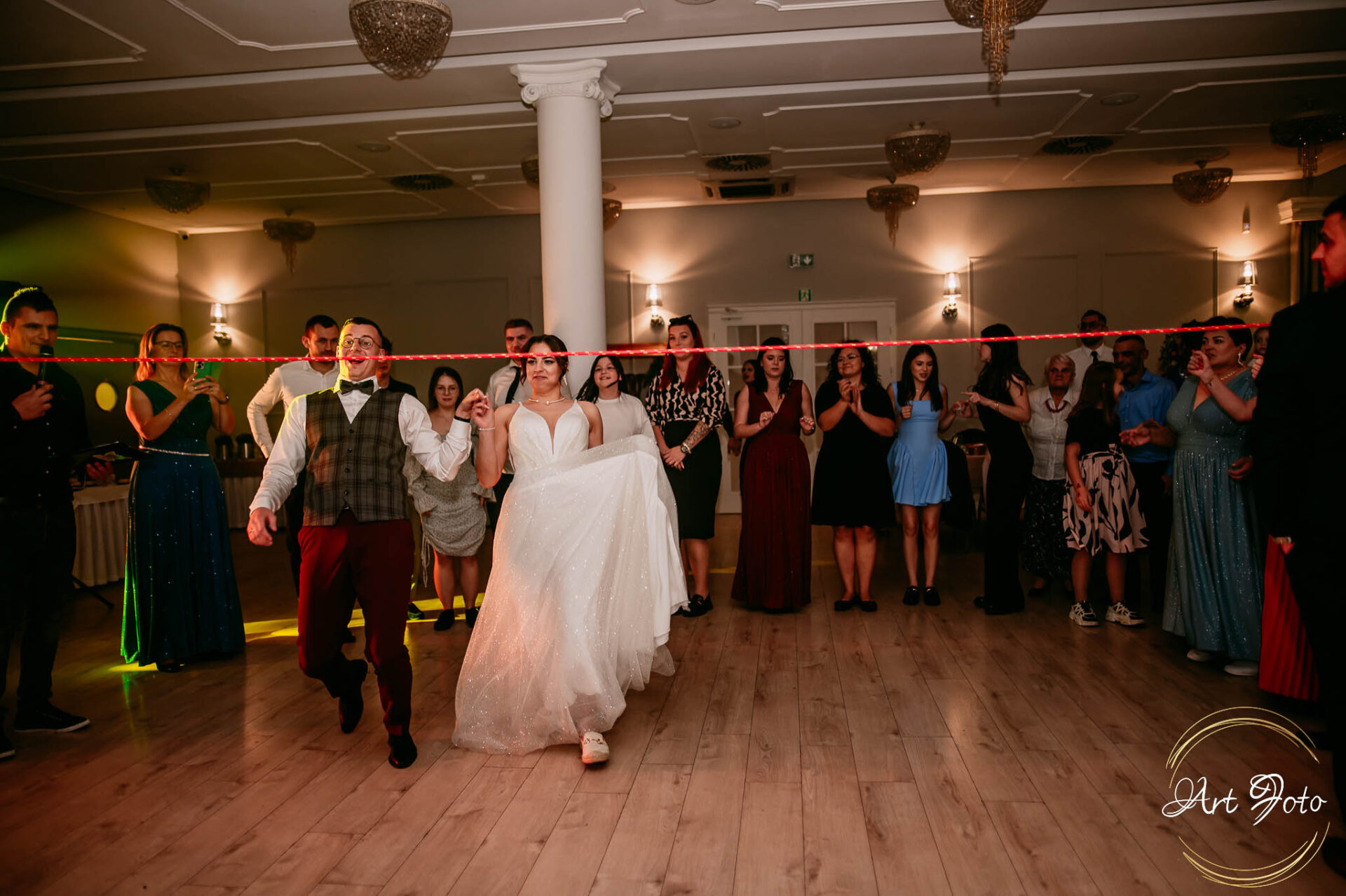 Po oficjalnej części przyszedł czas na prawdziwe świętowanie! Szaleństwo na parkiecie, wspólne przyśpiewki, oczepiny, a ja – niczym żywa fotobudka – łapałam w kadrach szczere uśmiechy, szalone układy taneczne i spontaniczne chwile radości. Bo przecież to właśnie one sprawiają, że wesele zostaje w pamięci na długo.