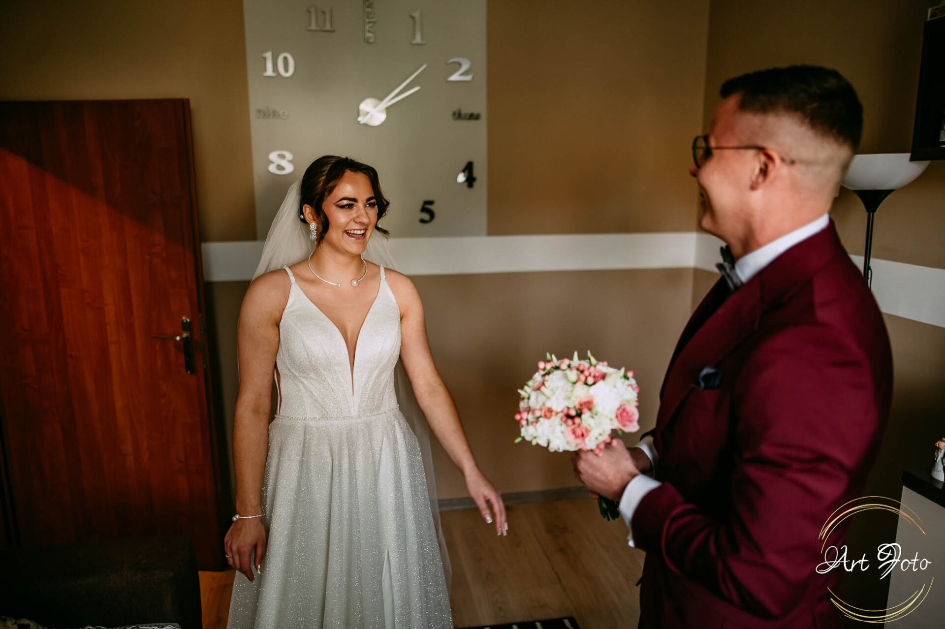 Dzień Patrycji i Mateusza rozpoczął się od prawdziwej mieszanki emocji. U Pana Młodego – szalone przygotowania, śmiechy, serdeczne uściski i ten moment, gdy w końcu, ubrany w garnitur, spojrzał w lustro i zdał sobie sprawę: to dziś! U Panny Młodej – subtelna ekscytacja, delikatne poprawki sukni oraz błyszczące oczy, gdy po raz pierwszy zobaczyła siebie gotową na ten najważniejszy dzień.