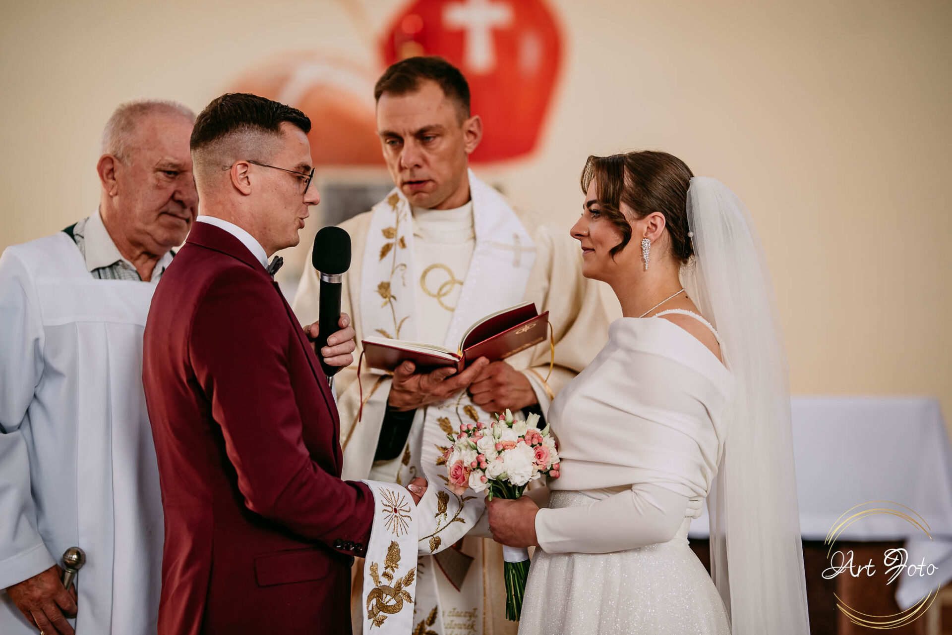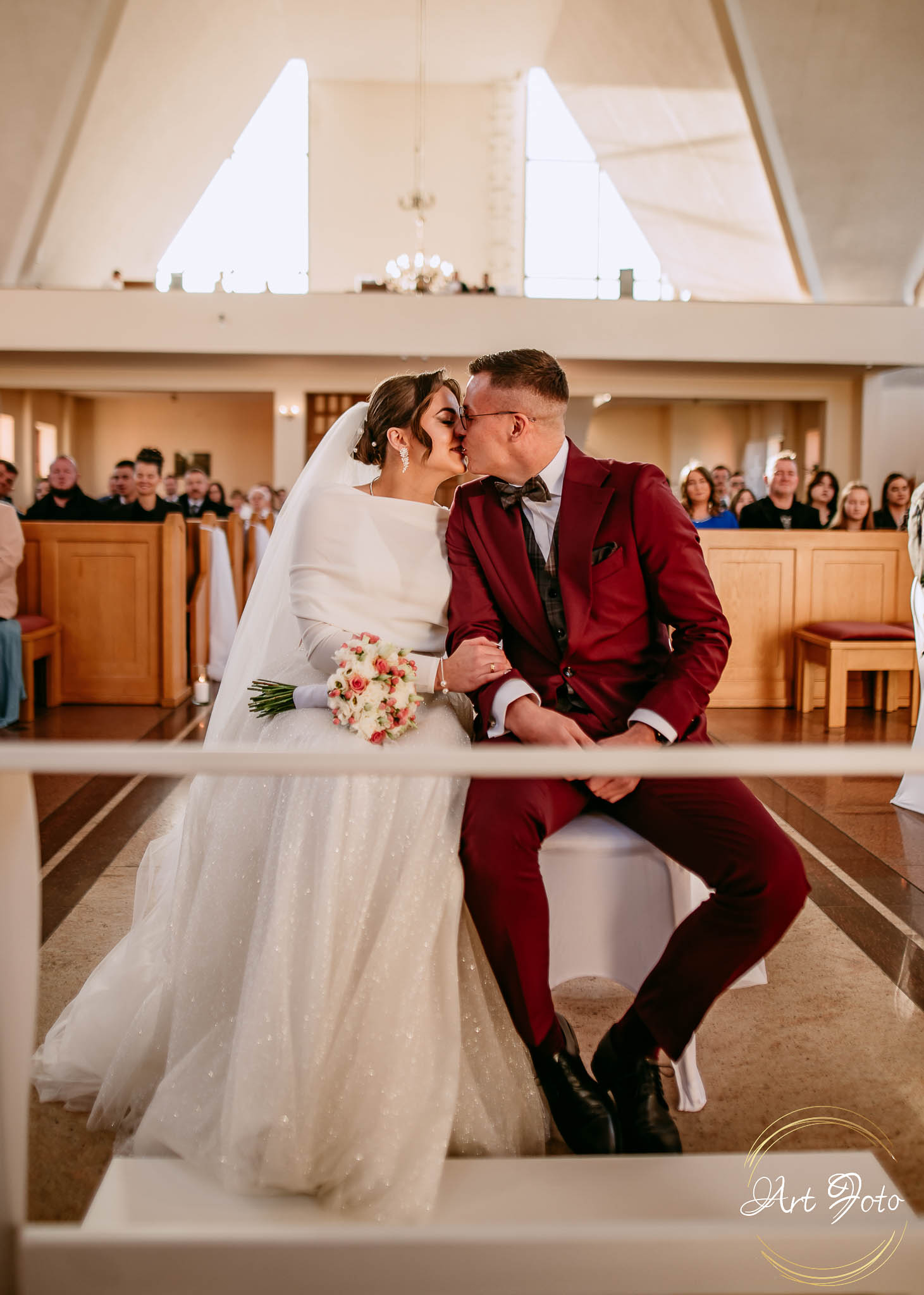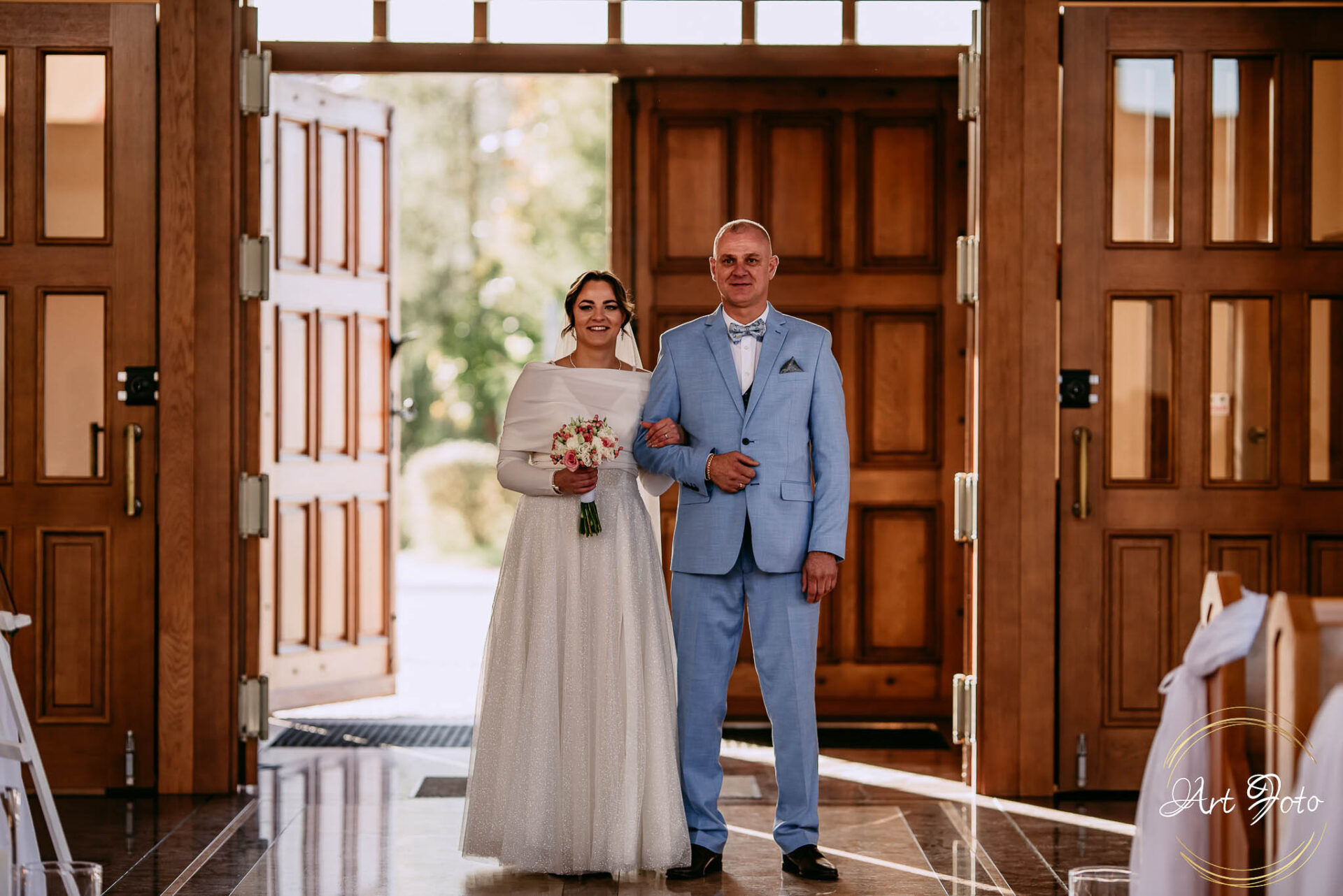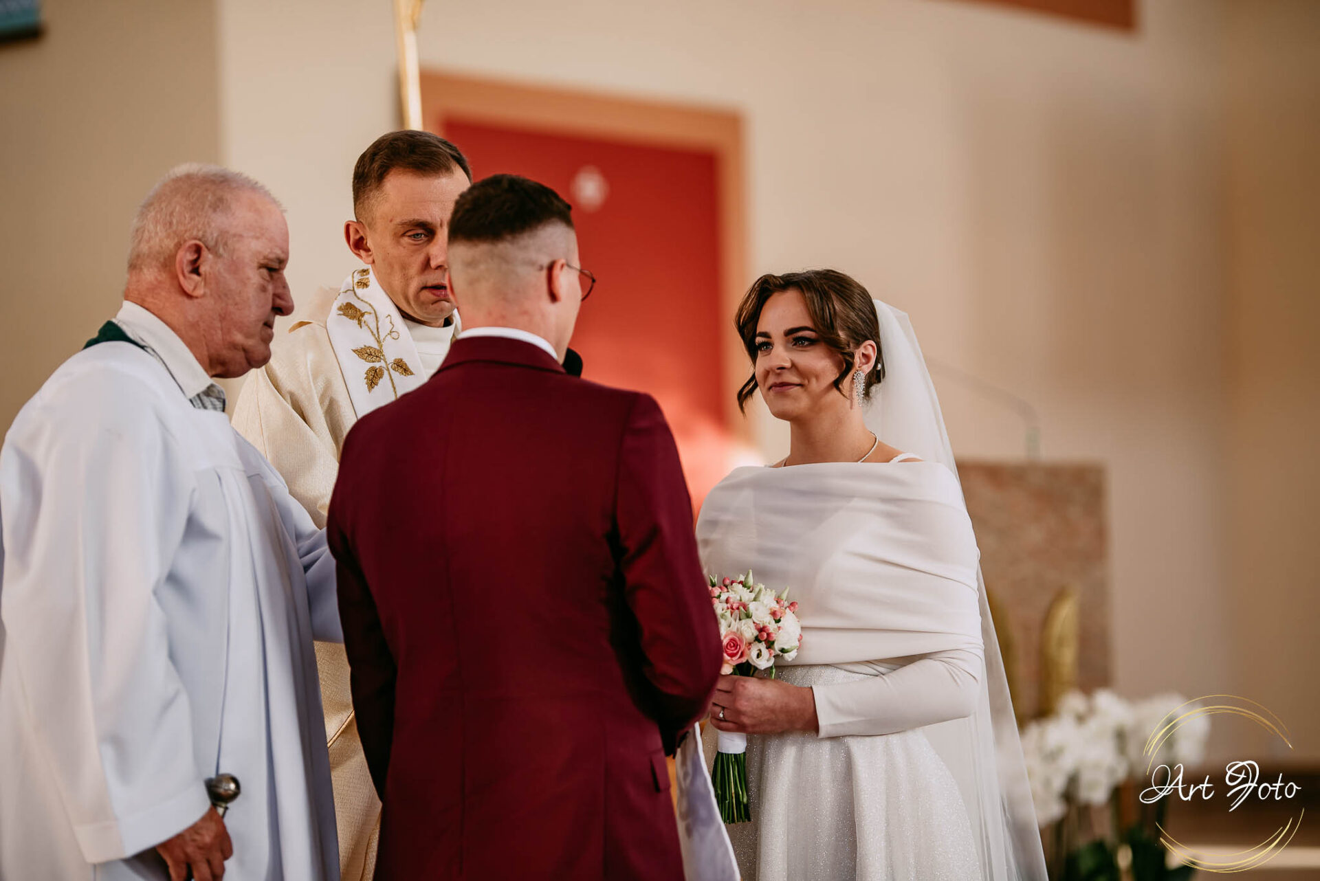 A później… ceremonia w kościele, gdzie gra światła dodatkowo dodawała magii i ważności tej chwili. Dźwięk przysięgi, subtelny uśmiech Patrycji, czuły dotyk dłoni Mateusza – momenty, które pozostaną z nimi na zawsze.